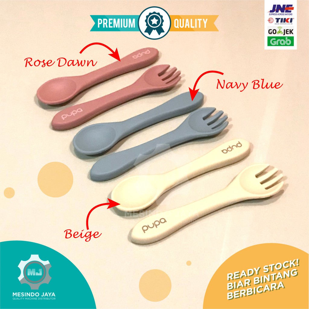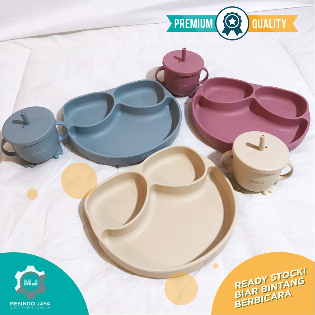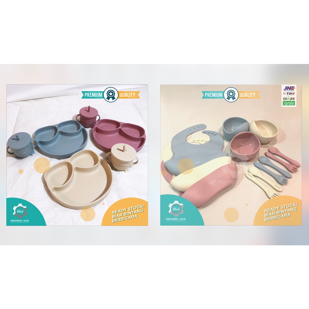 Alat Makan Bayi Silikon BIB, Sendok & Garpu Silicon, Mangkuk / Perlengkapan Makan Bayi Baby Set PUPA