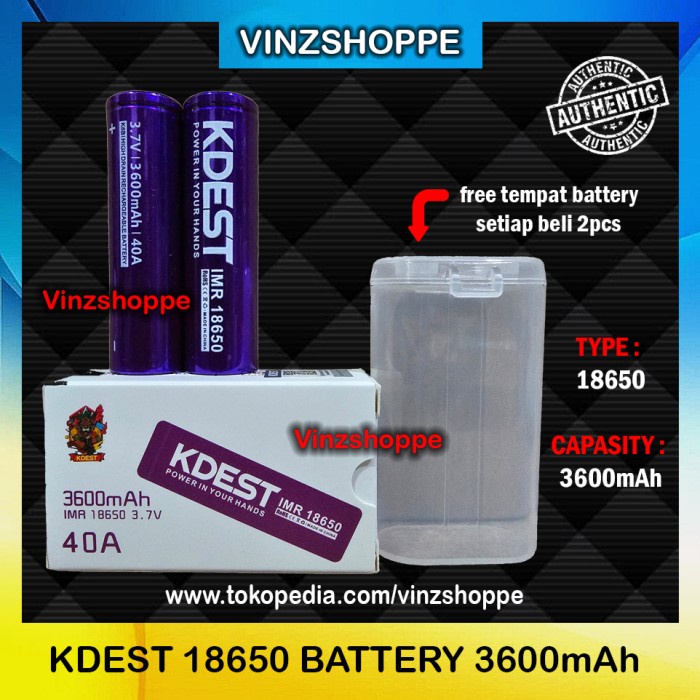 Authentic Battery KDEST 18650 - 3600mAh 40A - Baterai