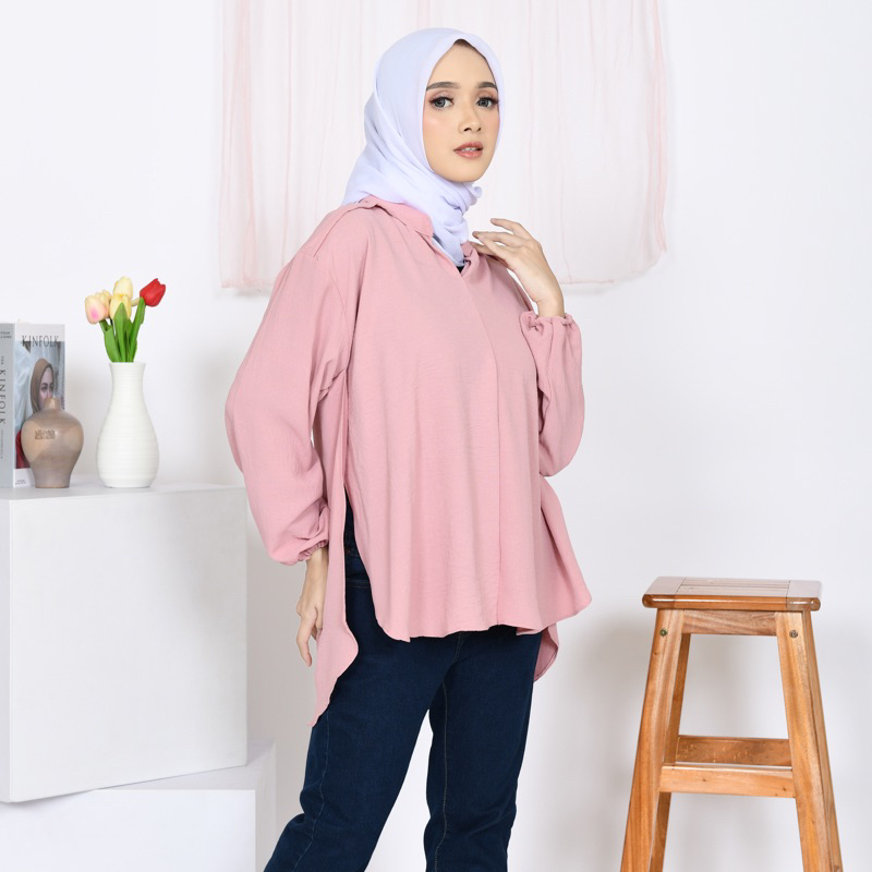 Kemeja Wanita Polos Belah Samping Premium Bahan Crinkle / Outher Cewek Polos / Atasan Wanita Terkini