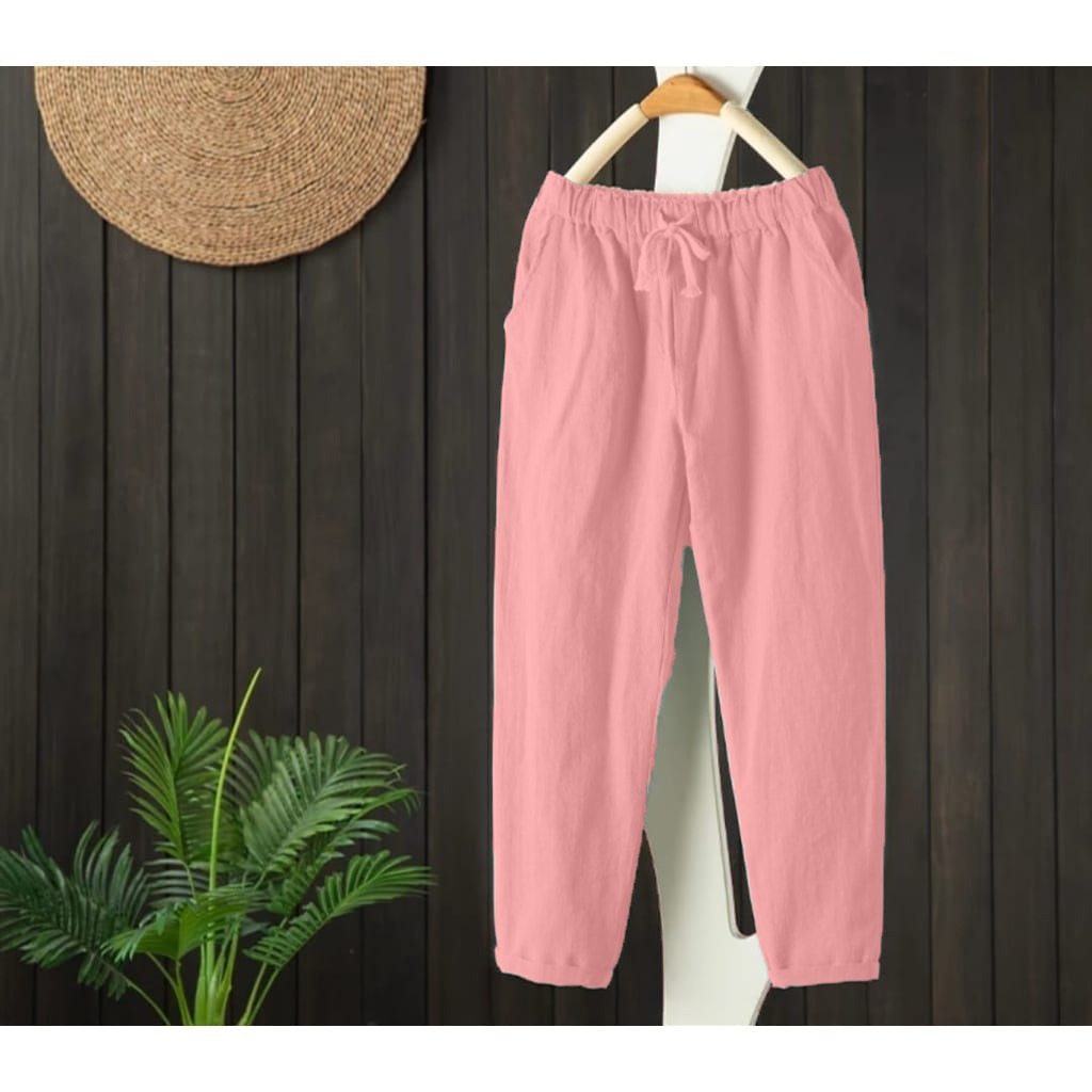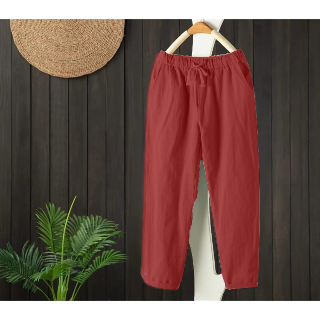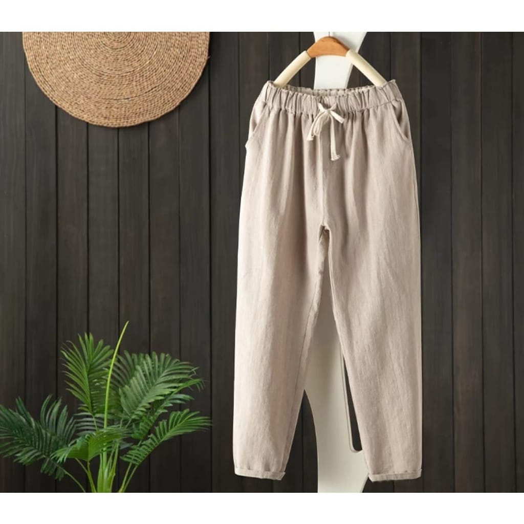 CELANA WANITA Linen Pants CELANA KEKINIAN BAGGY PANTS WANITA TERLARIS - Celana Kulot Pinggang Karet