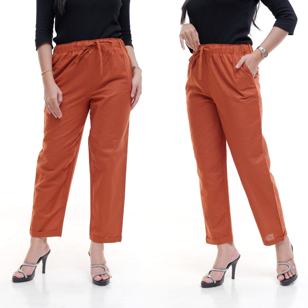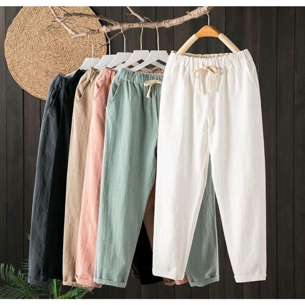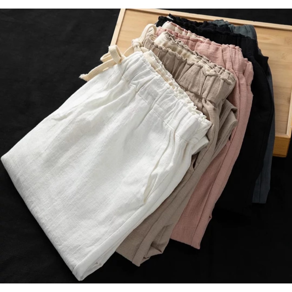 CELANA WANITA Linen Pants CELANA KEKINIAN BAGGY PANTS WANITA TERLARIS - Celana Kulot Pinggang Karet