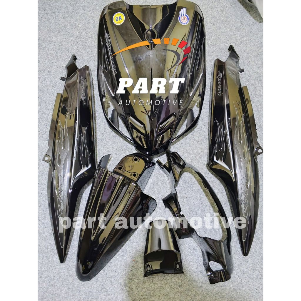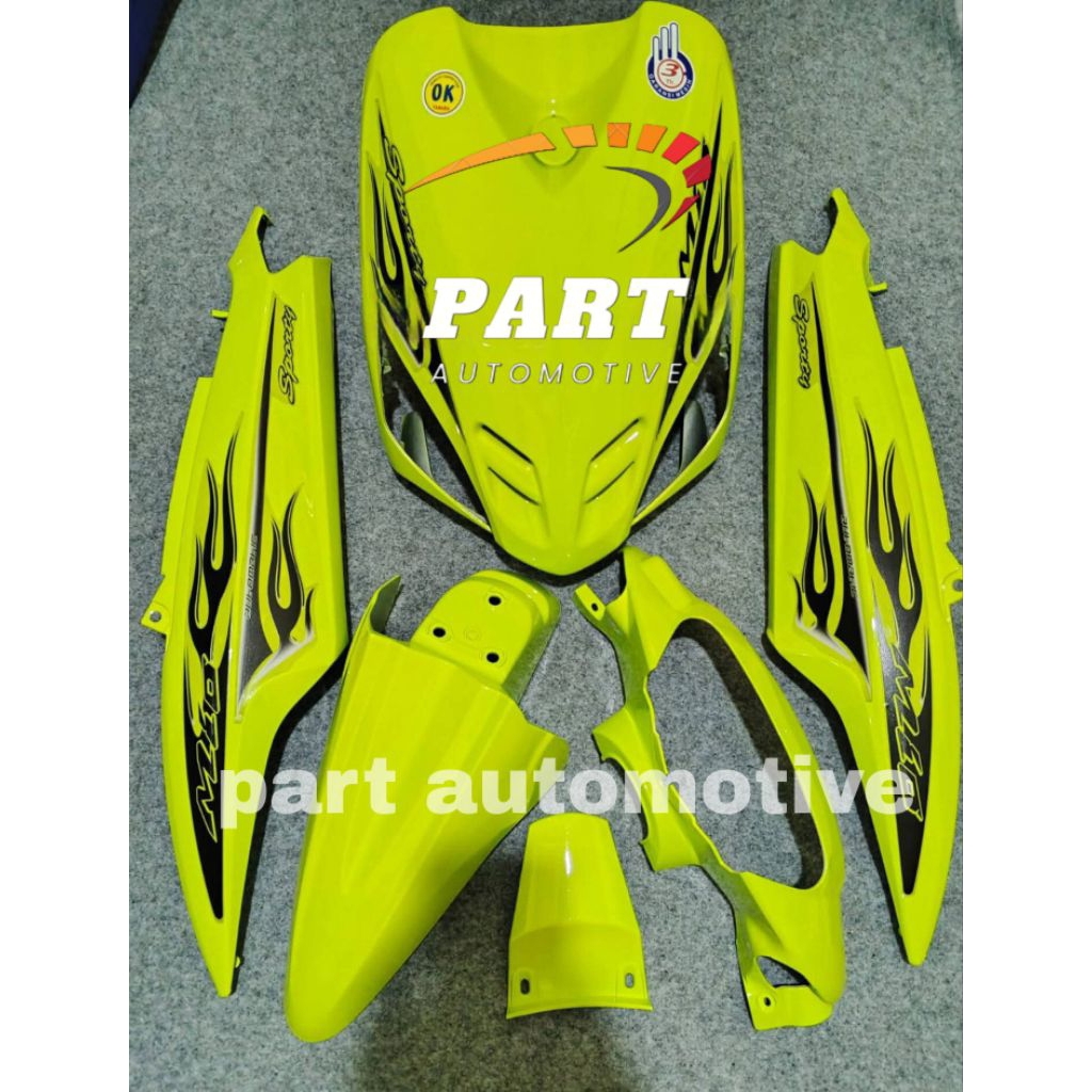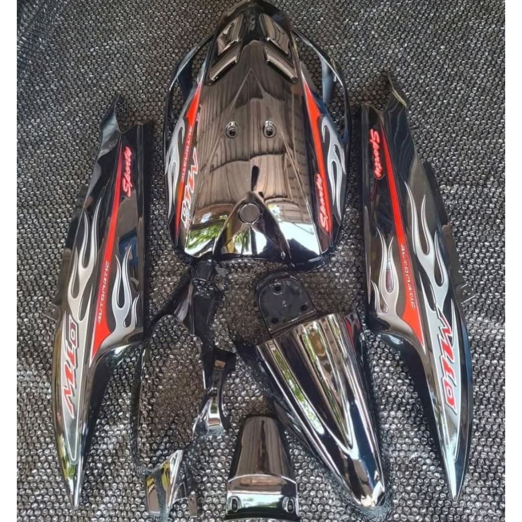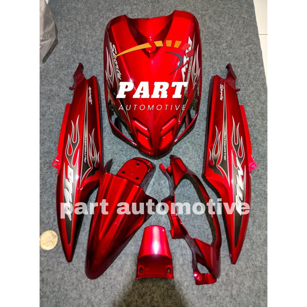 cover body full halus Mio sporty merah candy plus striping transparan api