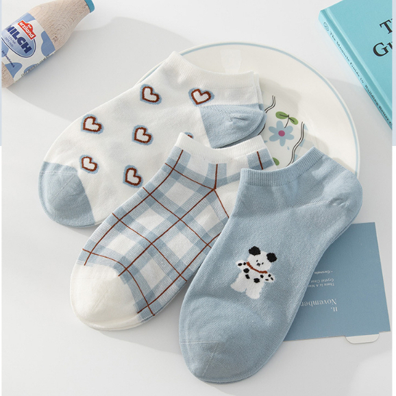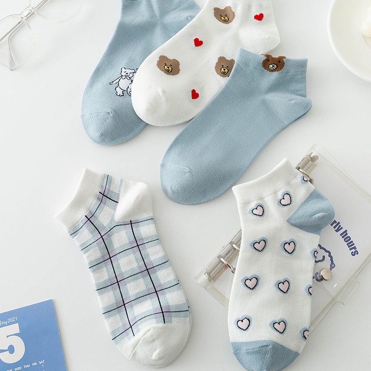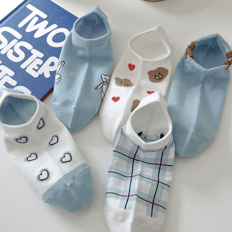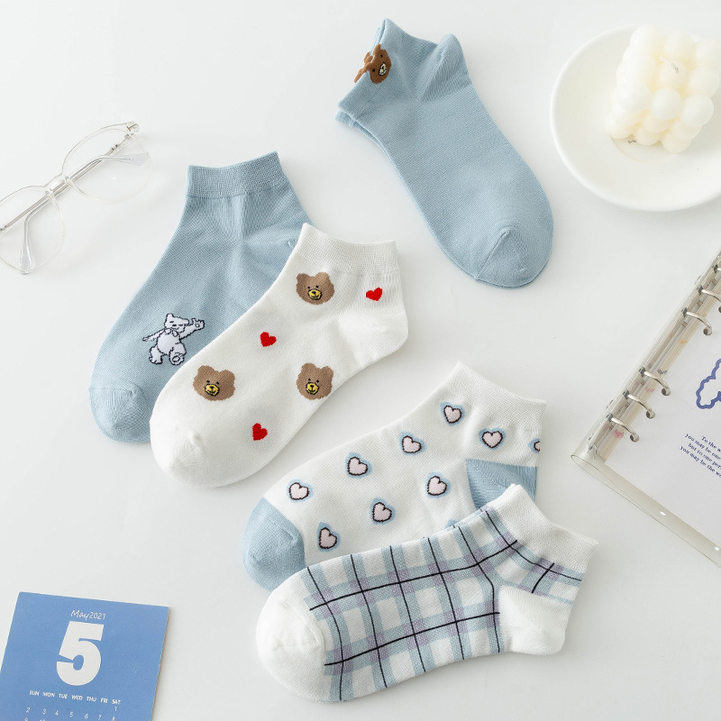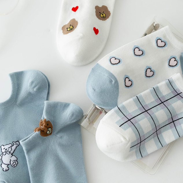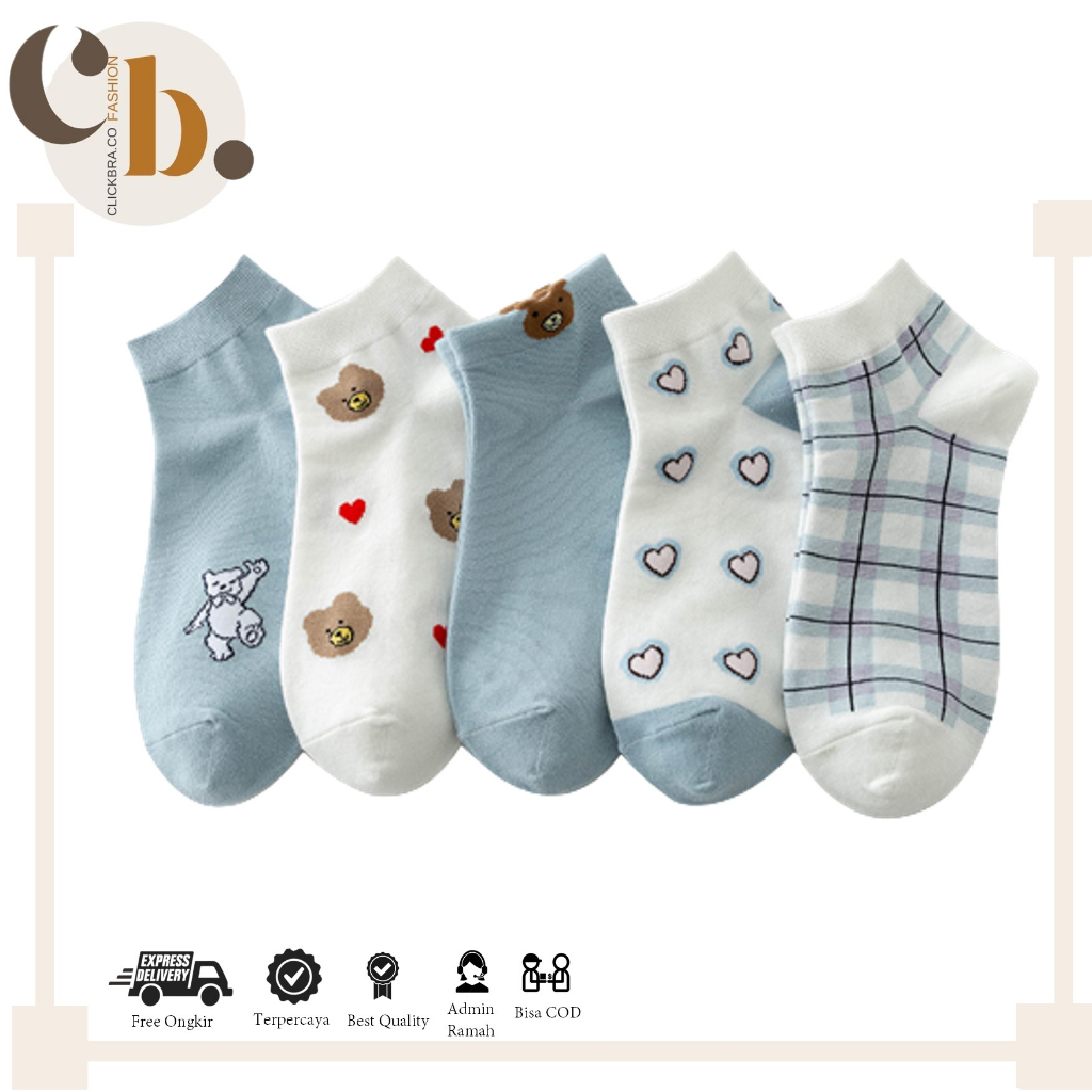 CLICKBRA | KK1249 Kaos Kaki Motif Beruang Bear Biru Blue Fashion Pendek Semata Kaki Socks