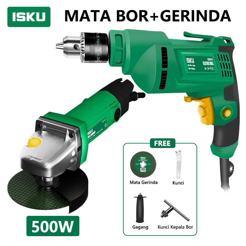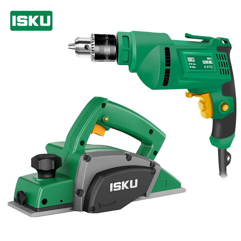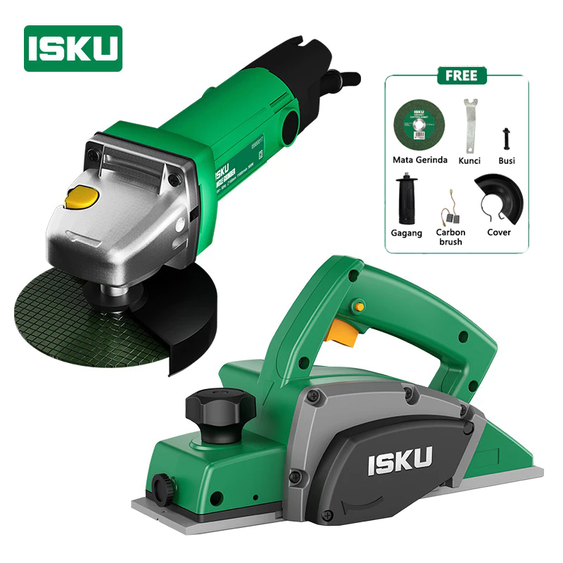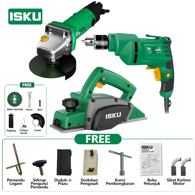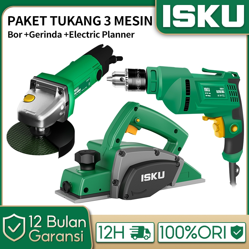 ISKU Paket Power Tools Mesin Bor 700W Gerinda 500W Mesin Serut Kayu Planer 450W Pasah