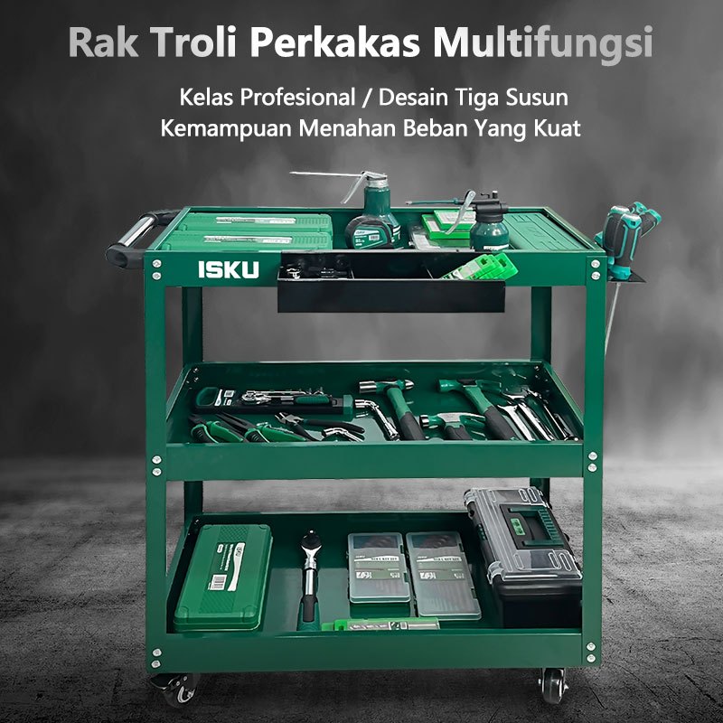 ISKU Rak Troli Bengkel 3 Susun Tool Cart Heavy Duty Rak Dorong Perkakas Service Mobil Motor Detailing Salon Mobil Rak Susun Besi Tebal Roda PU Silent Workshop Trolley 3 Tier Rak Penyimpanan Barang Serbaguna Tempat Kunci Anti Karat