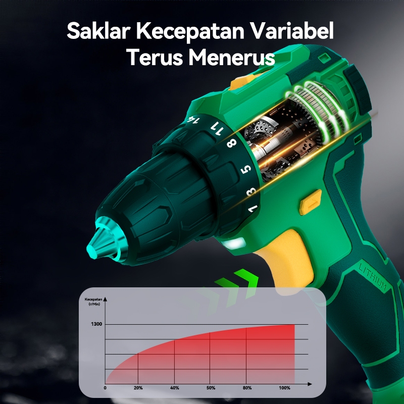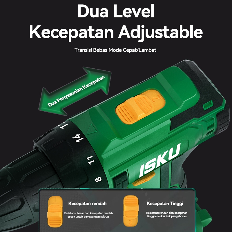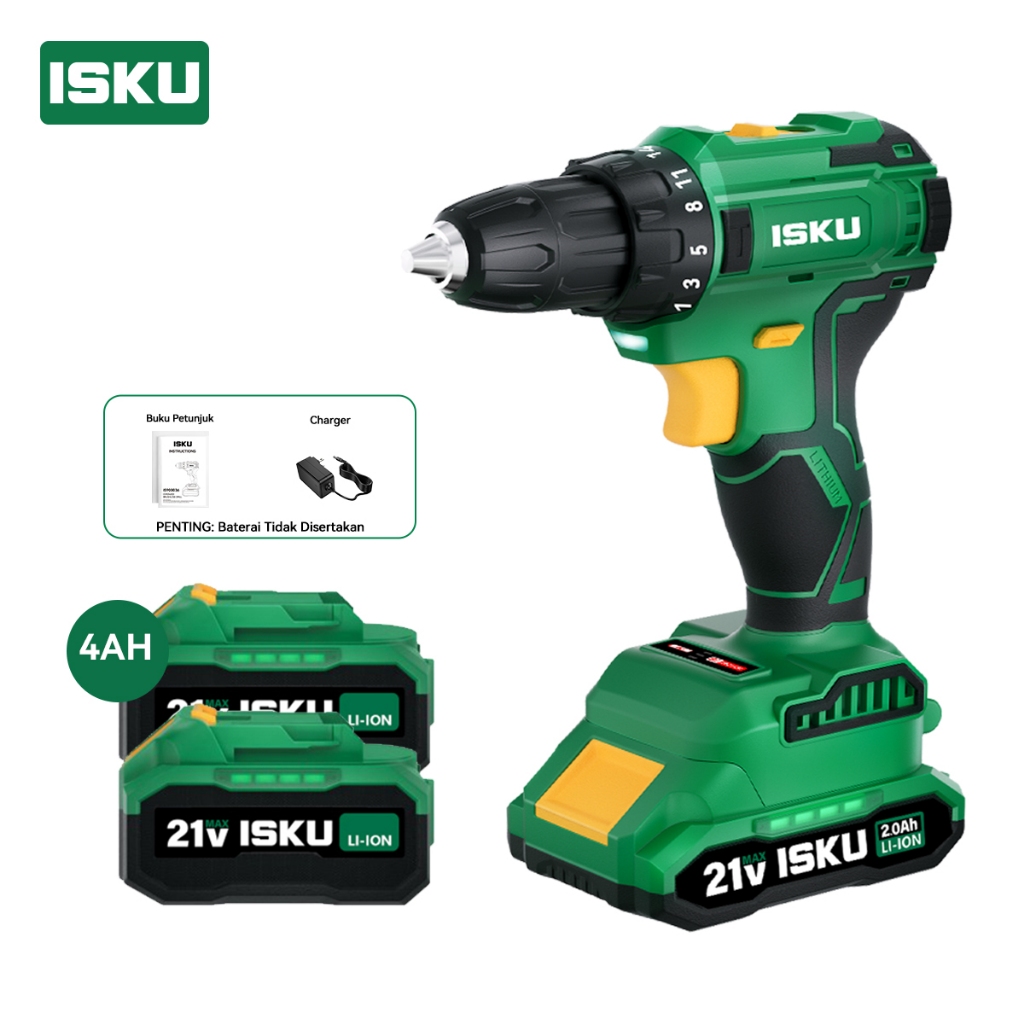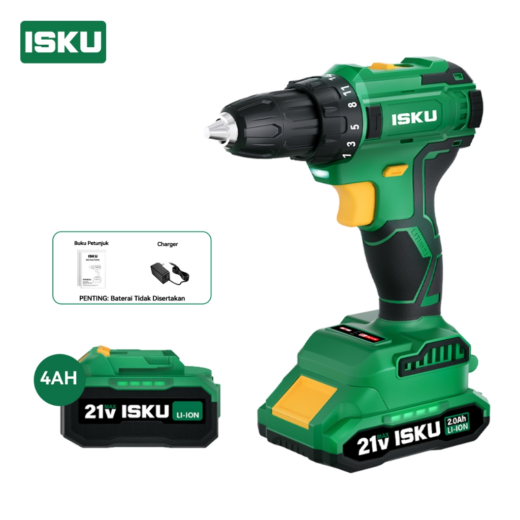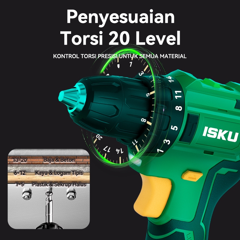 ISKU Brushless Cordless Drill 21V Heavy Duty 55Nm / 40Nm Mesin Bor Listrik Tanpa Kabel Alat Tukang Pasang Plafon Roofing Baut Kayu Besi Motor Tembaga Murni High Power Variable Speed