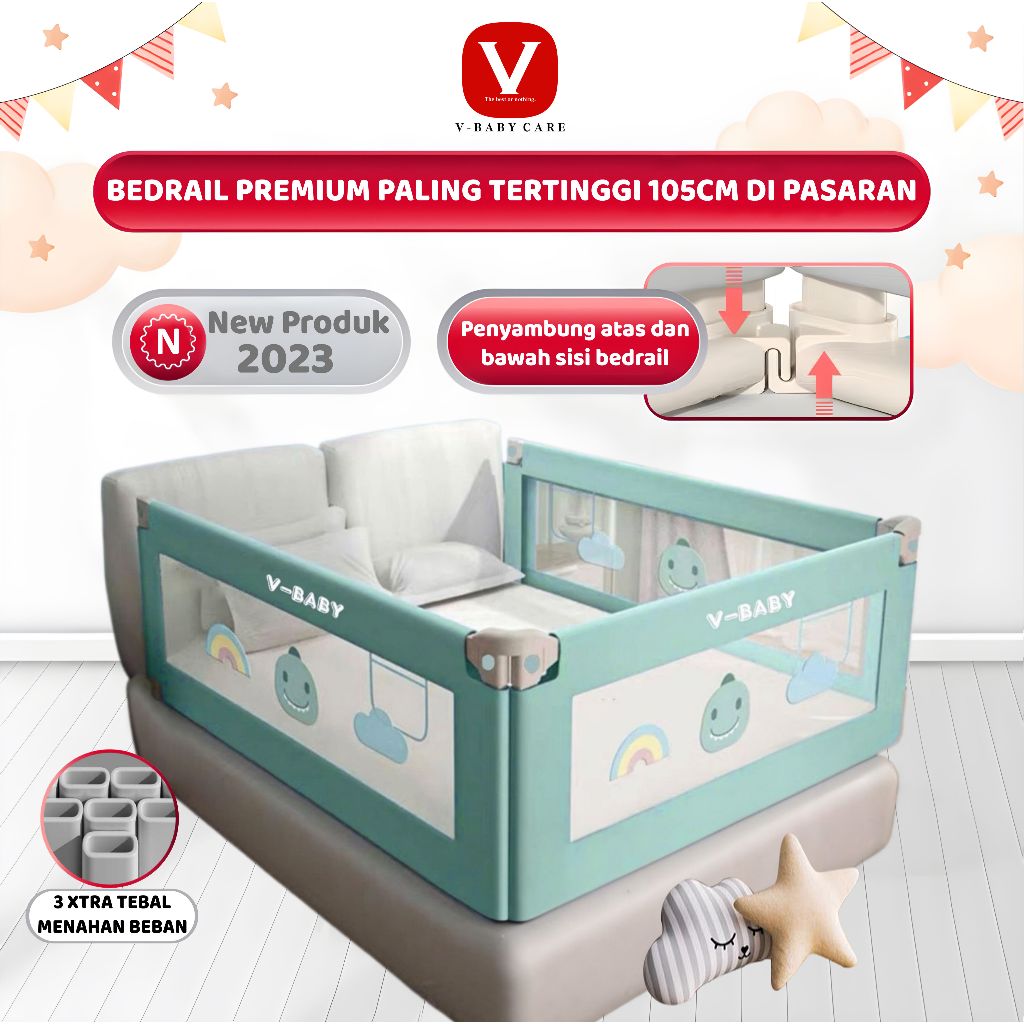 V-BABY CARE Baby Bedrail Safety Guard Bedguard Pembatas Pengaman Pagar Kasur Bayi V BABY-N2