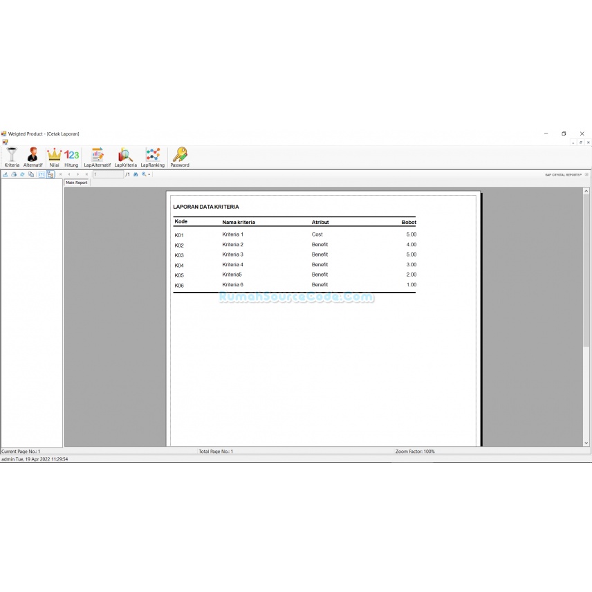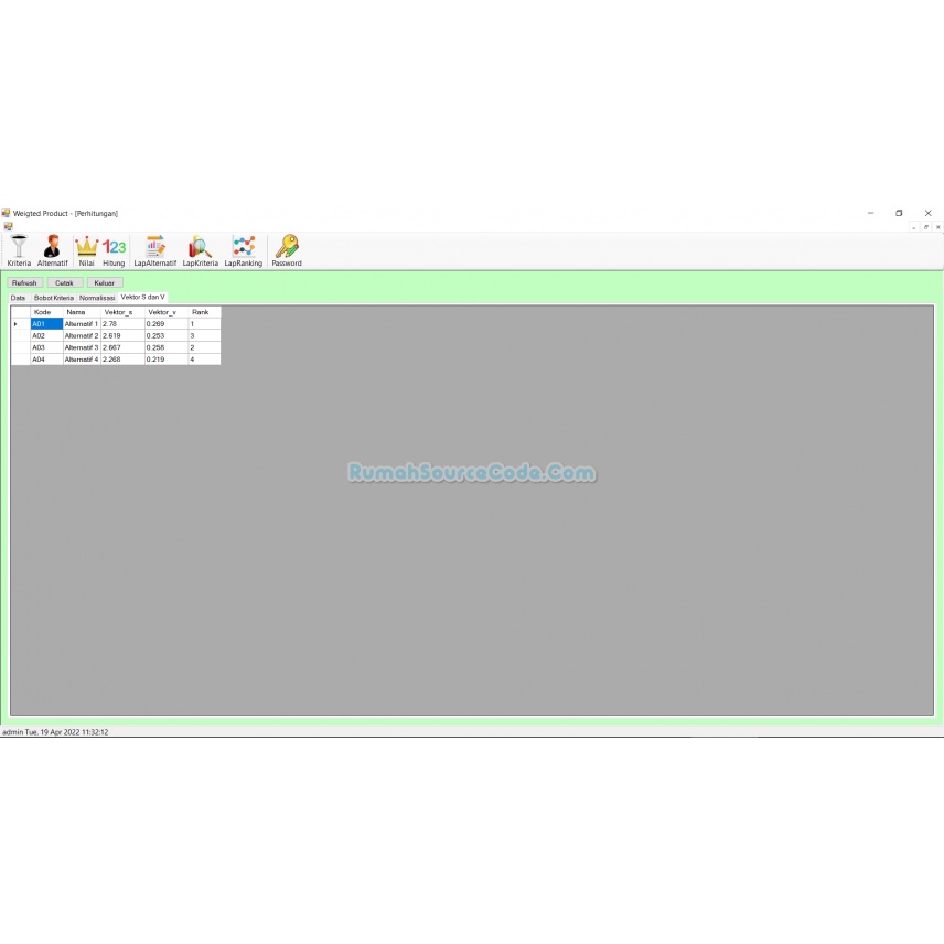 Source Code SPK Metode Weighted Product C#