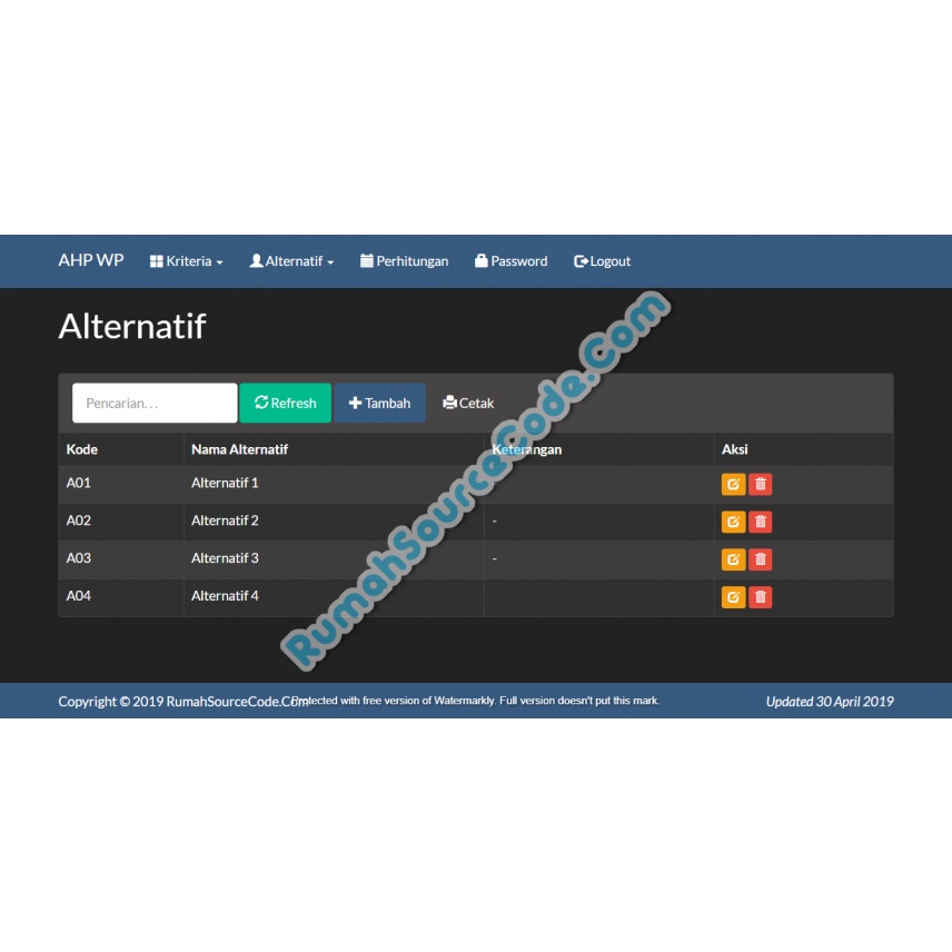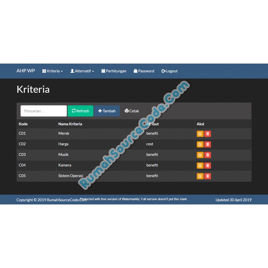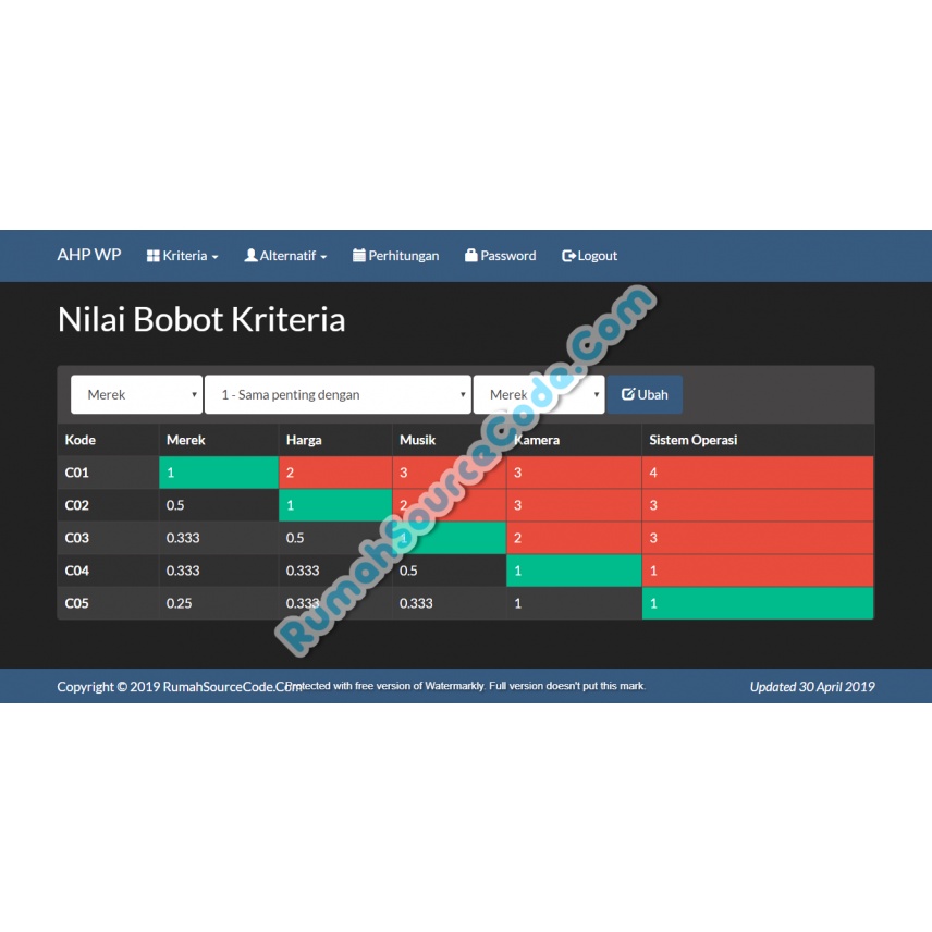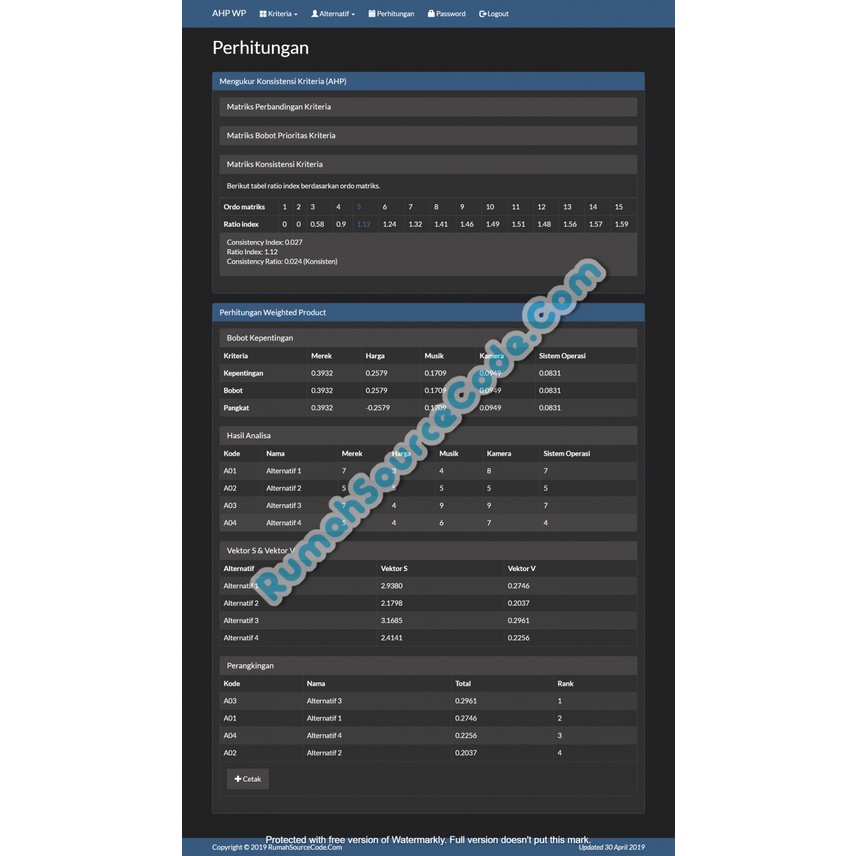 Source Code SPK Metode AHP Weighted Product PHP