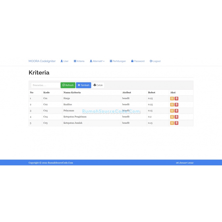 Source Code SPK Metode MOORA CodeIgniter