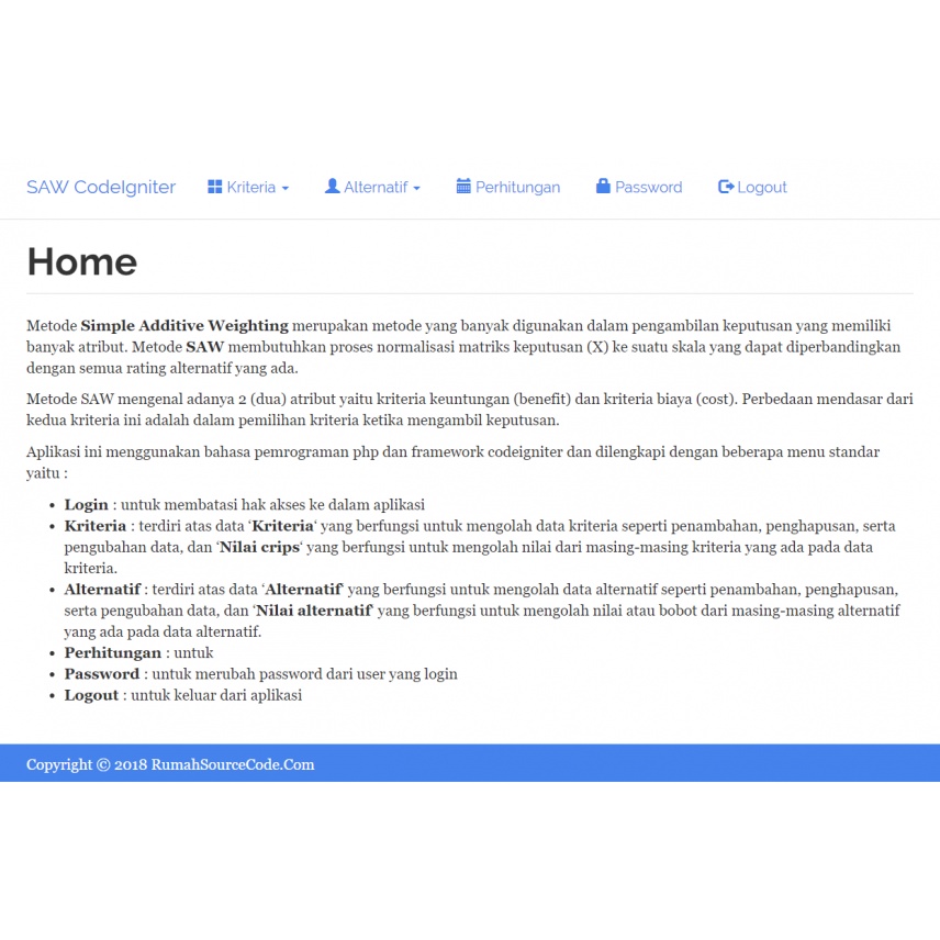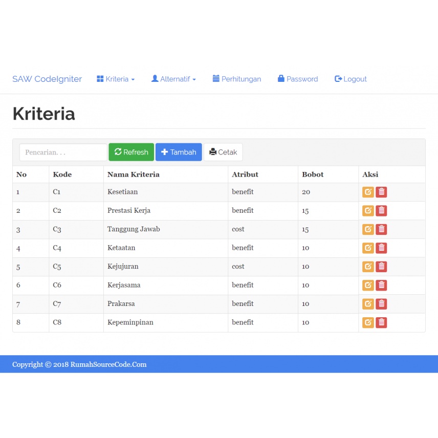 Source Code SPK Metode SAW Codeigniter
