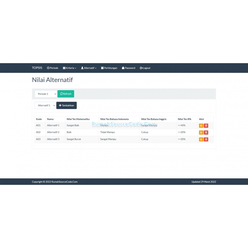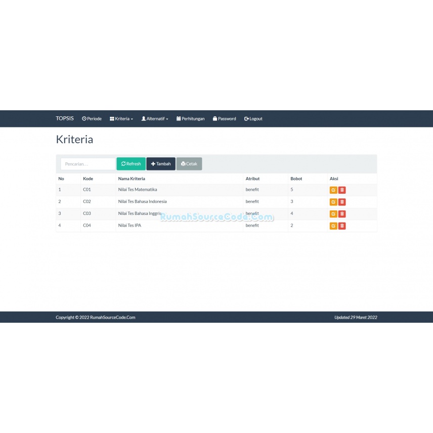 Source Code SPK Metode TOPSIS Periode Codeigniter