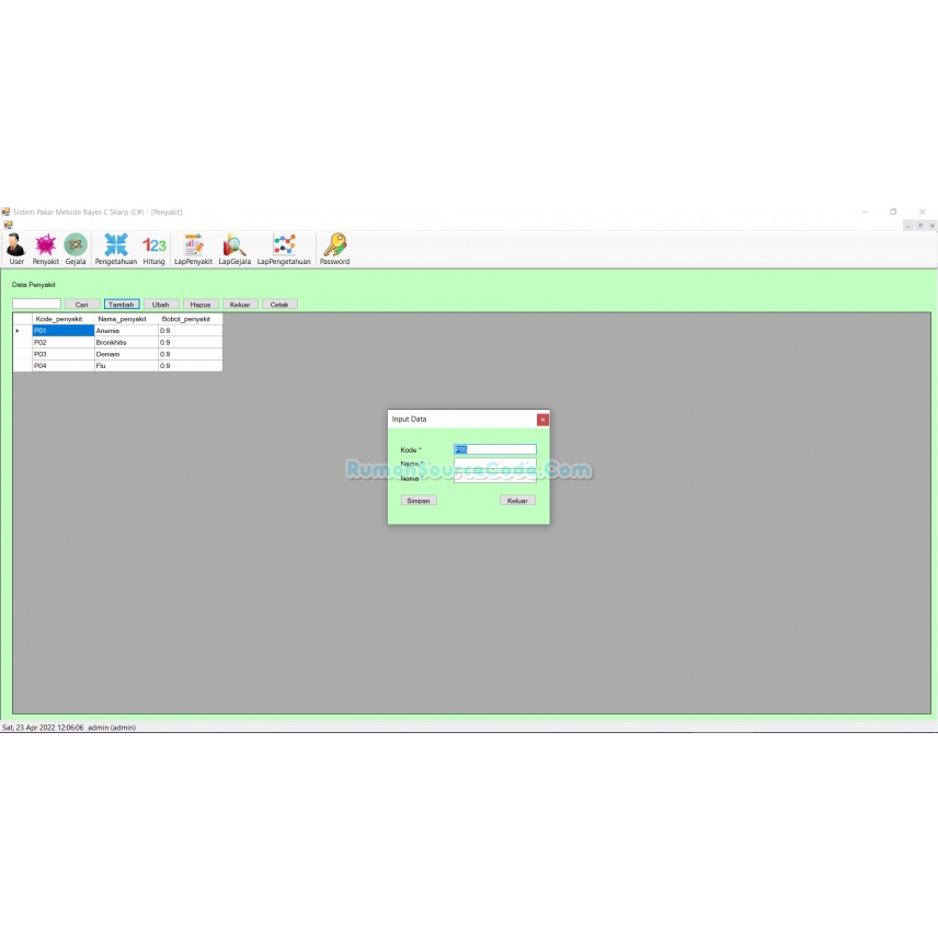 Source Code Sistem Pakar Metode Bayes dengan C#