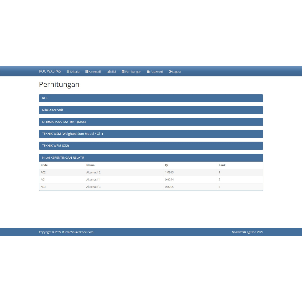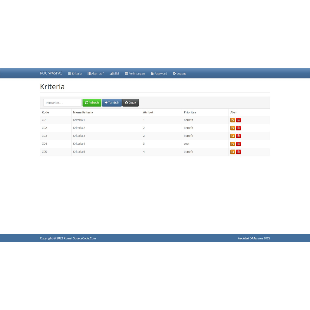 Source Code SPK Metode ROC WASPAS PHP