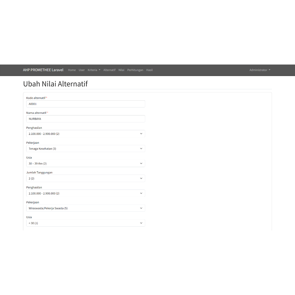 Source Code SPK Metode AHP PROMETHEE Laravel