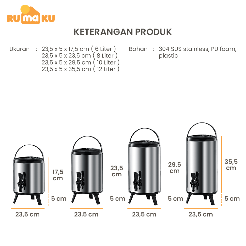 Dispenser Air Minum Milk Tea Bucket Stainless 304 Water Jug Termos Prasmanan Es Air Panas Dingin Serbaguna