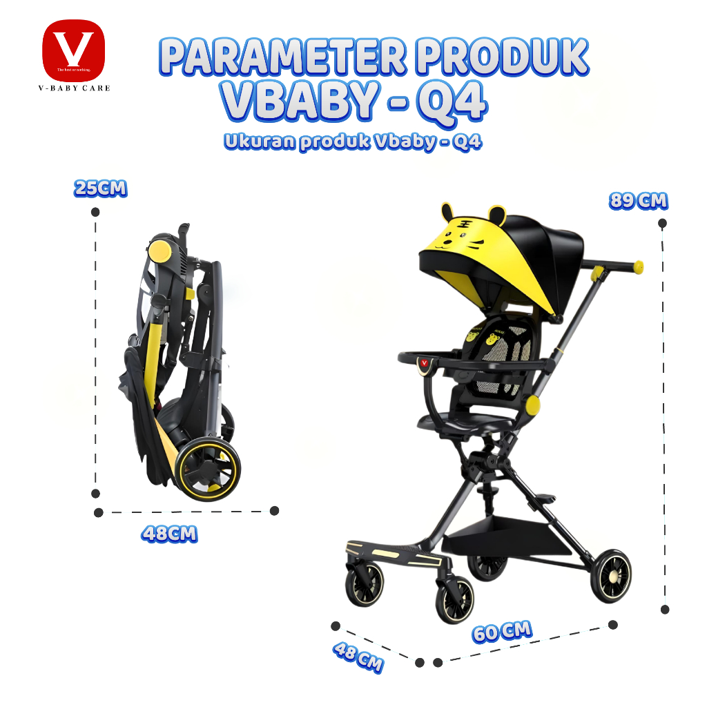 VBABY CARE Stroller Baby /Kereta dorong bayi/Bayi bisa duduk atau berbaring/Troli yang ringan dan dapat dilipat/ Kereta bayi dorong tangan ( model terbaru tidak pengap bisa duduk dan bisa baring )-Q4