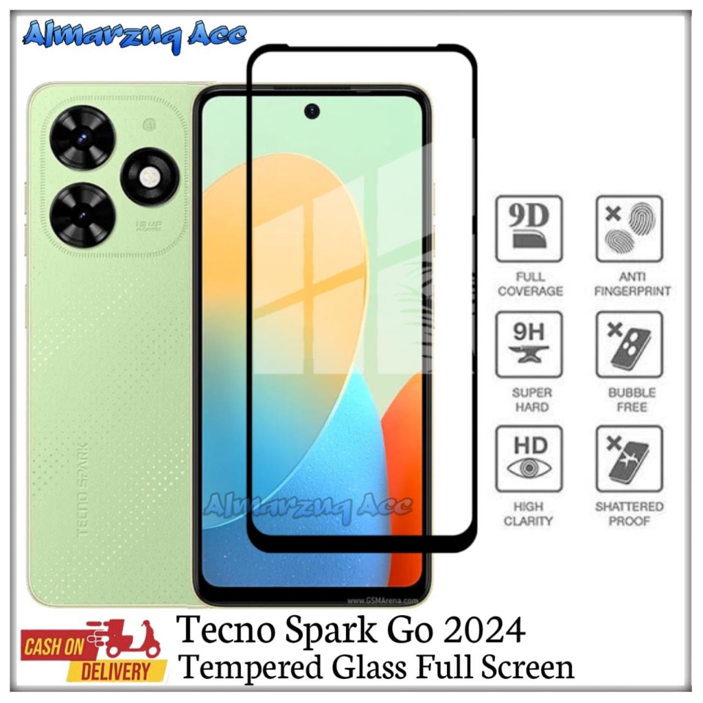 Tempered Glass Full Screen Tecno Spark Go 2024 Anti Gores Kaca Pelindung Layar