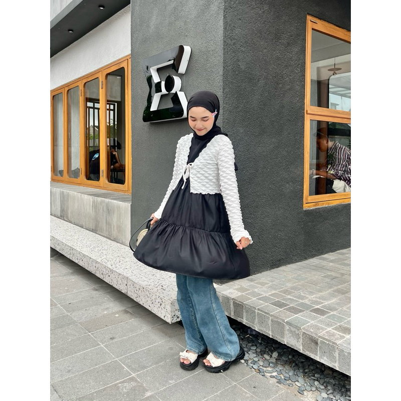 Midi dress || mini dress || dress rempel || dress over jeans || dress korea