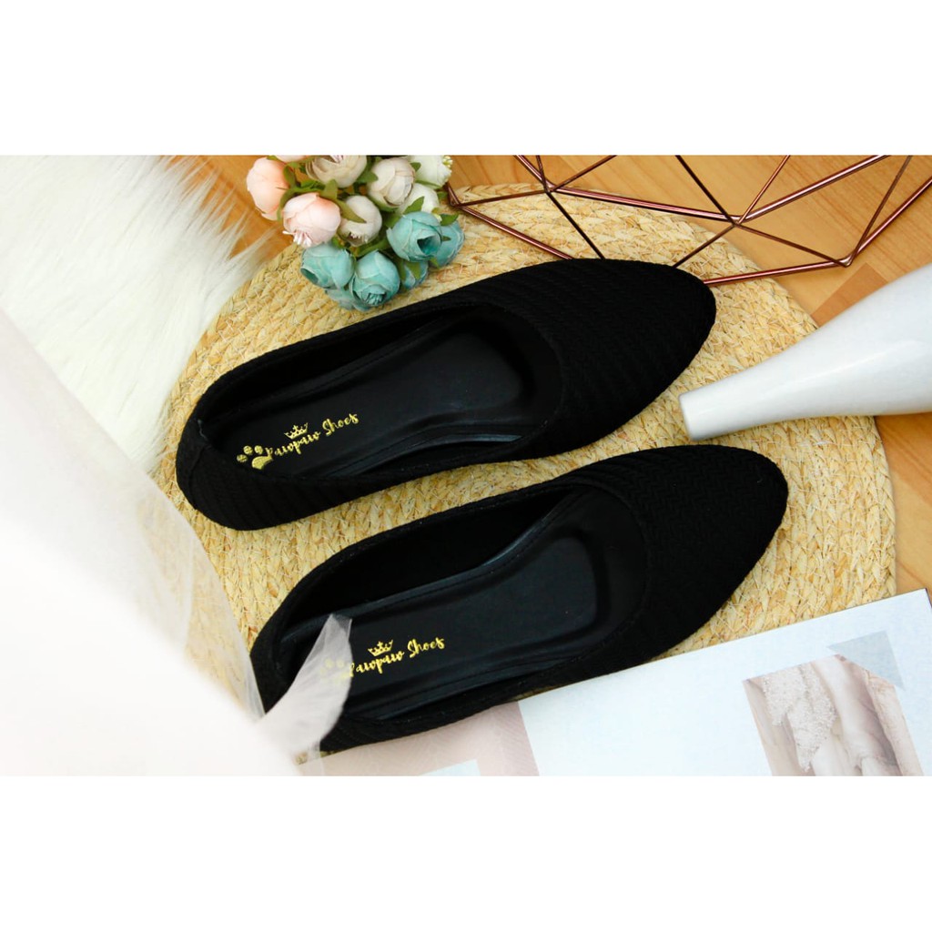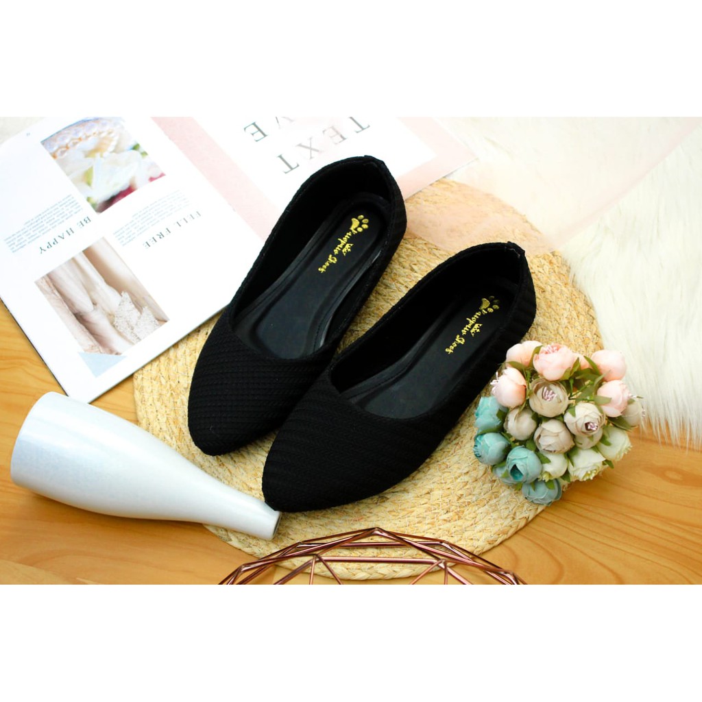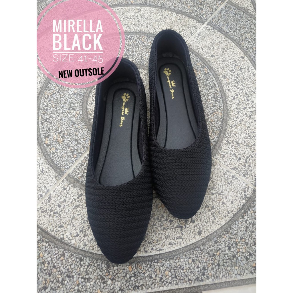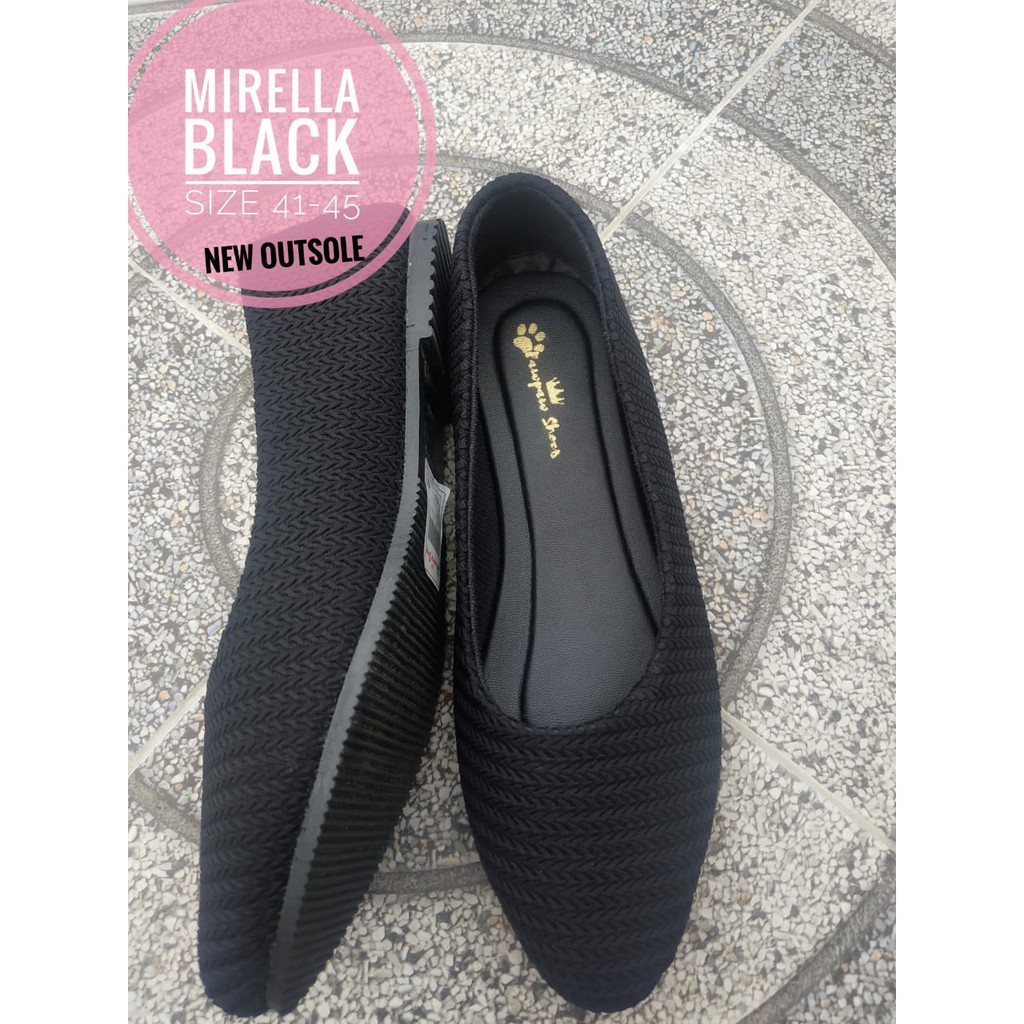 SEPATU WANITA FLAT SHOES MIRELLA BLACK BIG SIZE 41 42 43 44 45 PAWPAW SHOES