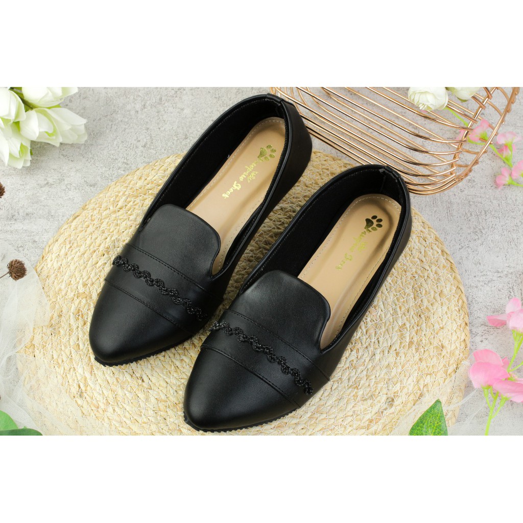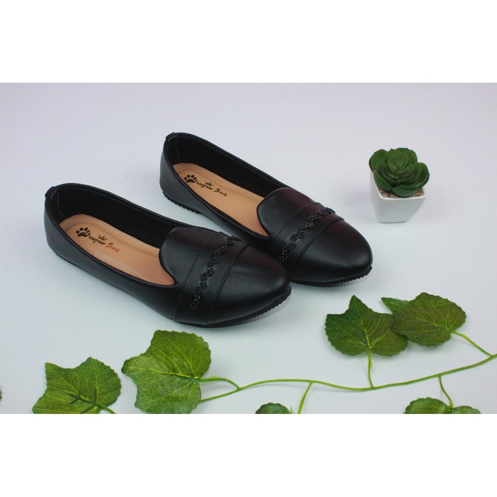 SEPATU WANITA FLATSHOES NADIA BLACK BIG SIZE 41 42 43 44 45 PAWPAW