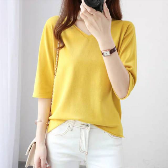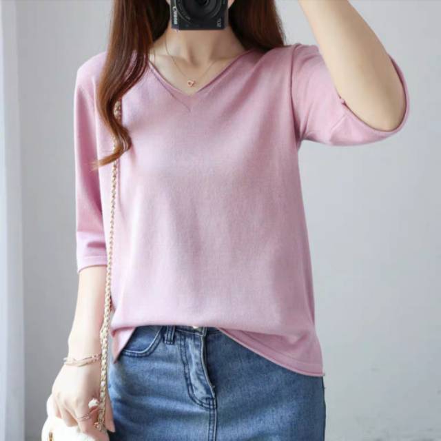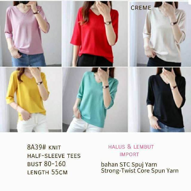 8A39# KNIT HALF SLEEVE TEES IMPORT