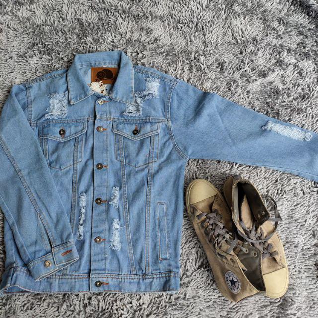 (COD) Jaket jeans sampai JUMBO (M - XXXXL) jaket jeans cowok cewek oversize tebal