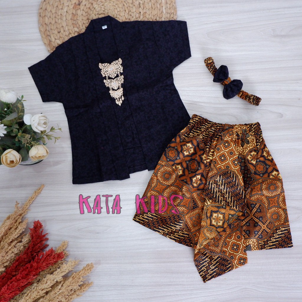 Kebaya Anak / Kutubaru Anak set 3in1 hitam