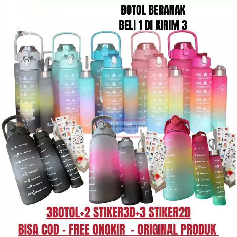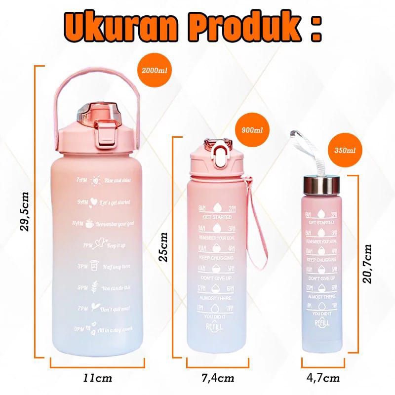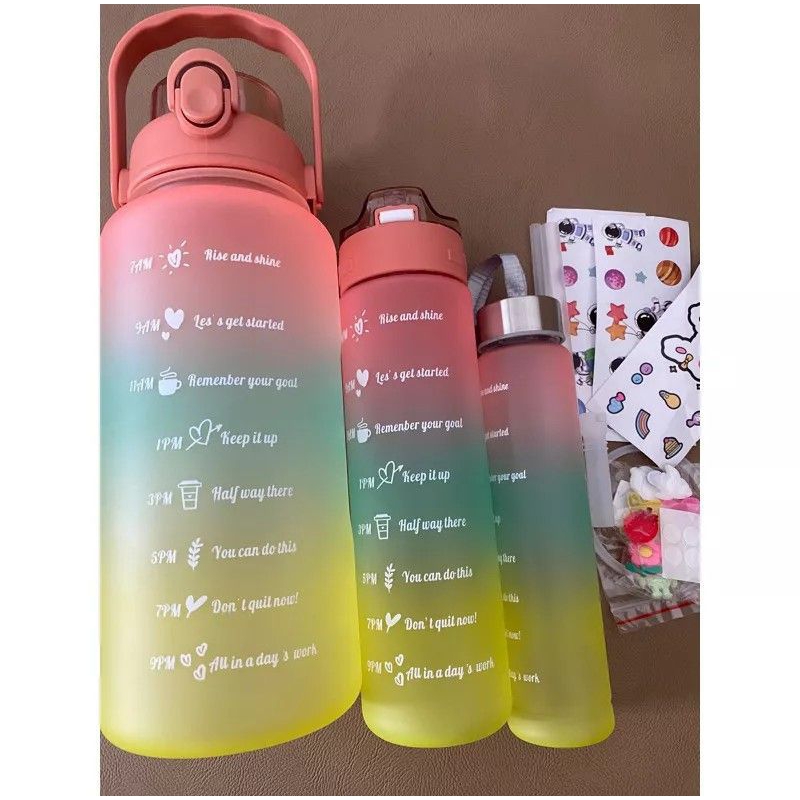 Botol Minum ISI 3 PCS gradiasi viral pekanbaru / botol minum motivasi penanda waktu / botol minum 2 Liter 2000ML riau