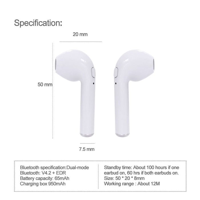 JH HEADSET BLUETOOTH 4.2 SPORT TRUE WIRELESS AIRPODS+CHARGER BOX HBQ i7S
