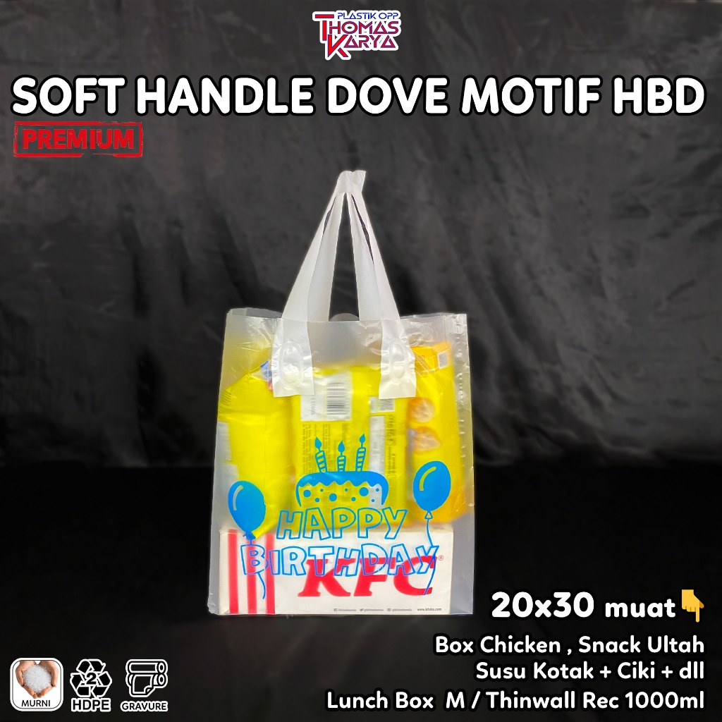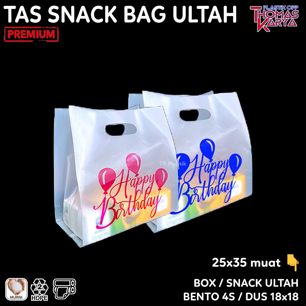 [PAKET ULTAH 50 ANAK] Softhandle Ulang Tahun 20x30 HAPPY BIRTHDAY / THANK YOU + Dus Nasi + OPP Snack