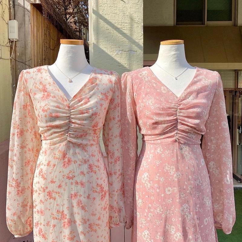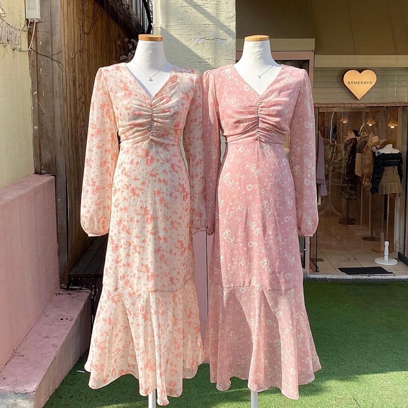 D0873 SOMEDAY KOREAN STYLE FLORAL VINTAGE MAXI DRESS PANTAI LENGAN PANJANG LIBURAN