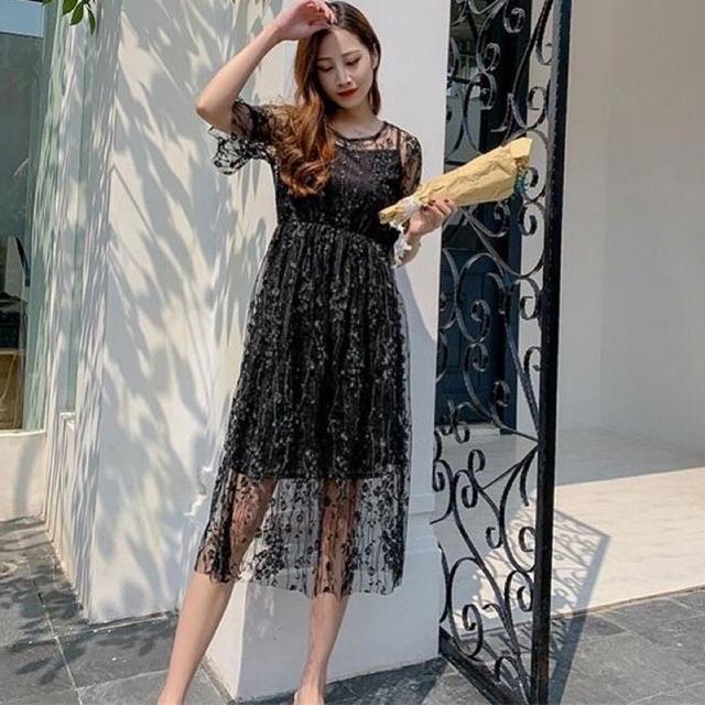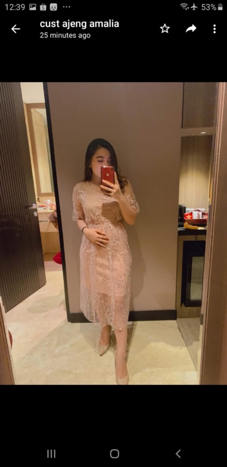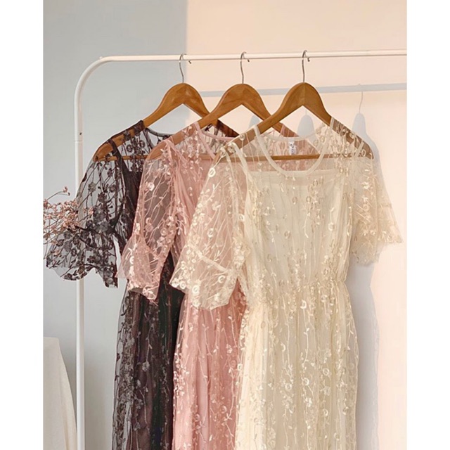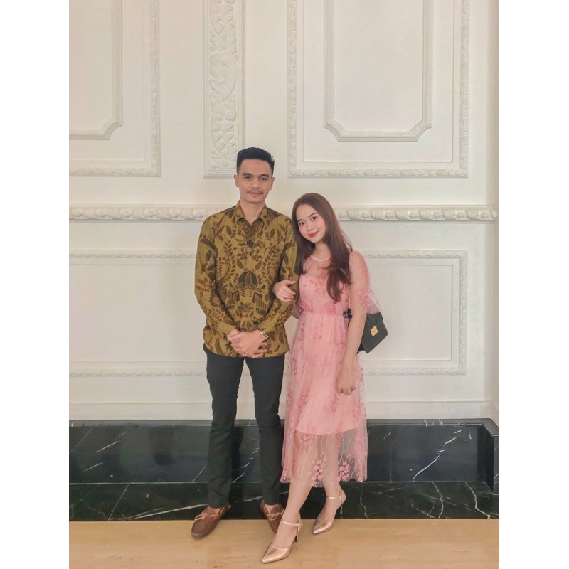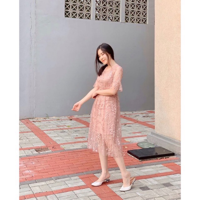 D0154 FUYUMI KOREAN LACE MIDI VINTAGE DRESS TILE BRUKAT PESTA BUMIL FRIENDLY SIMPLE