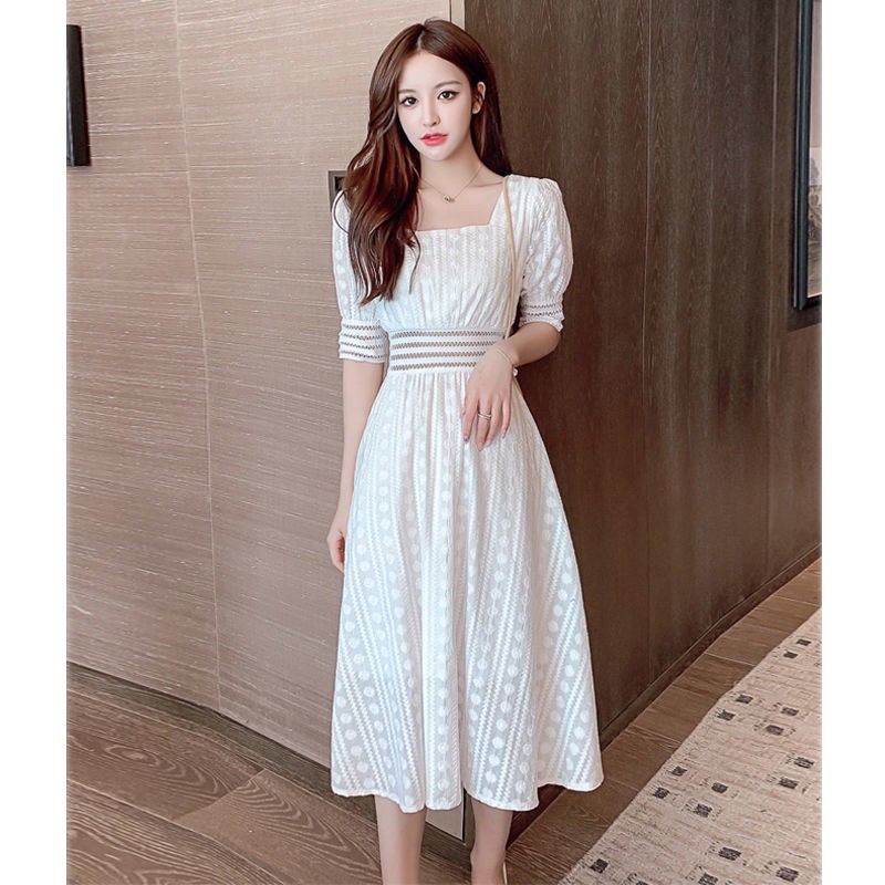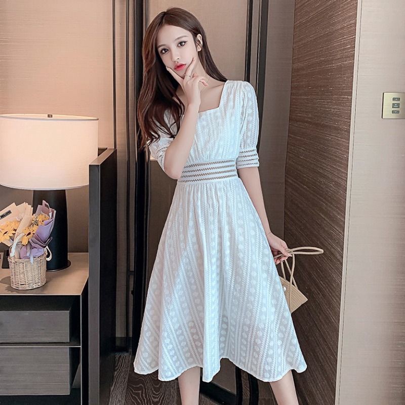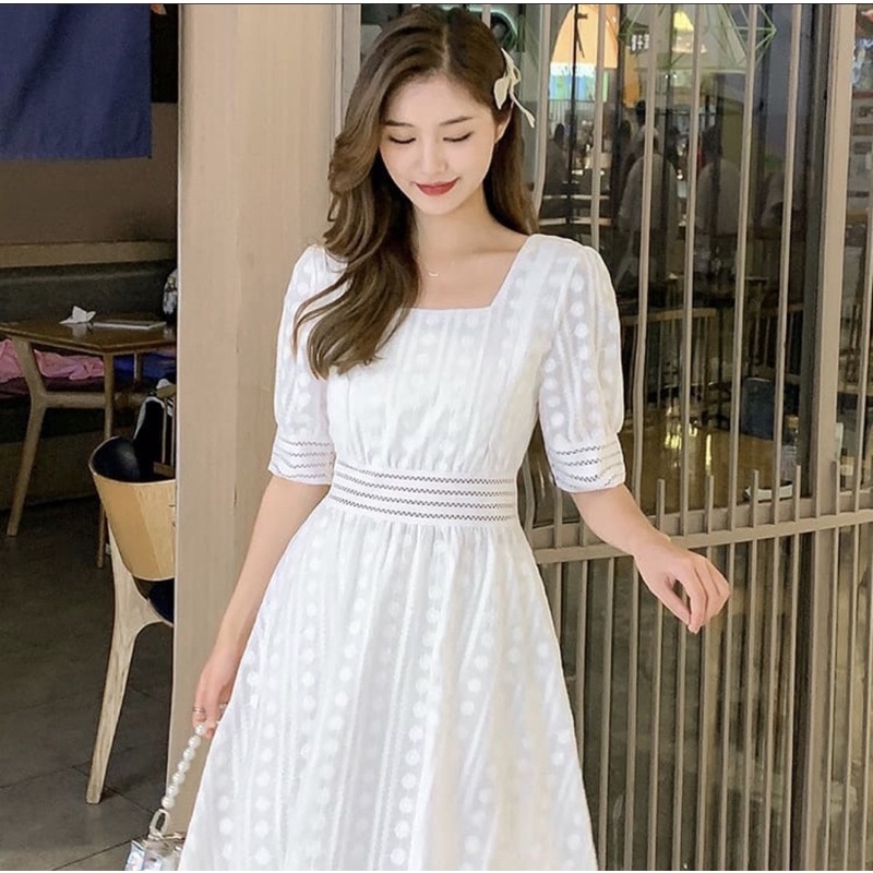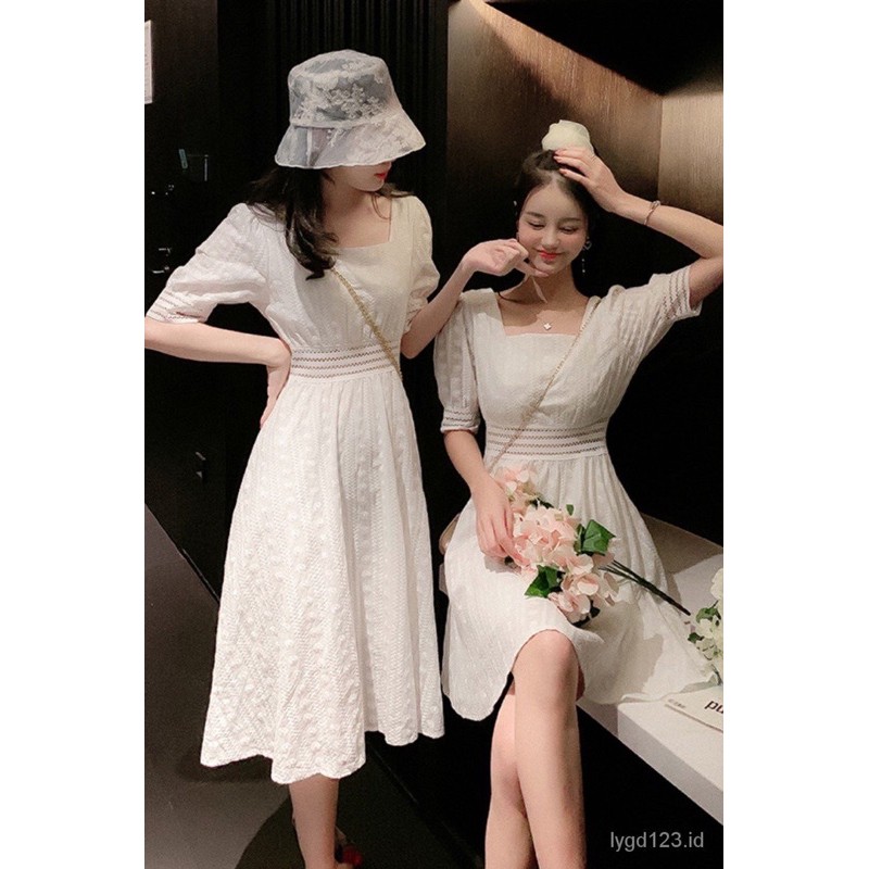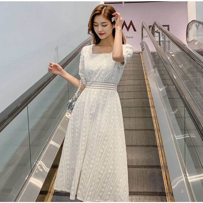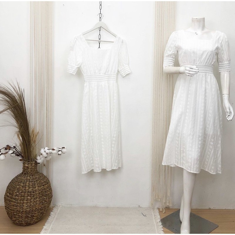 [ADA SIZE JUMBO] D0558 SALOVA KOREAN STYLE FLORAL VINTAGE MIDI DRESS SIMPLE SQUARE NATAL