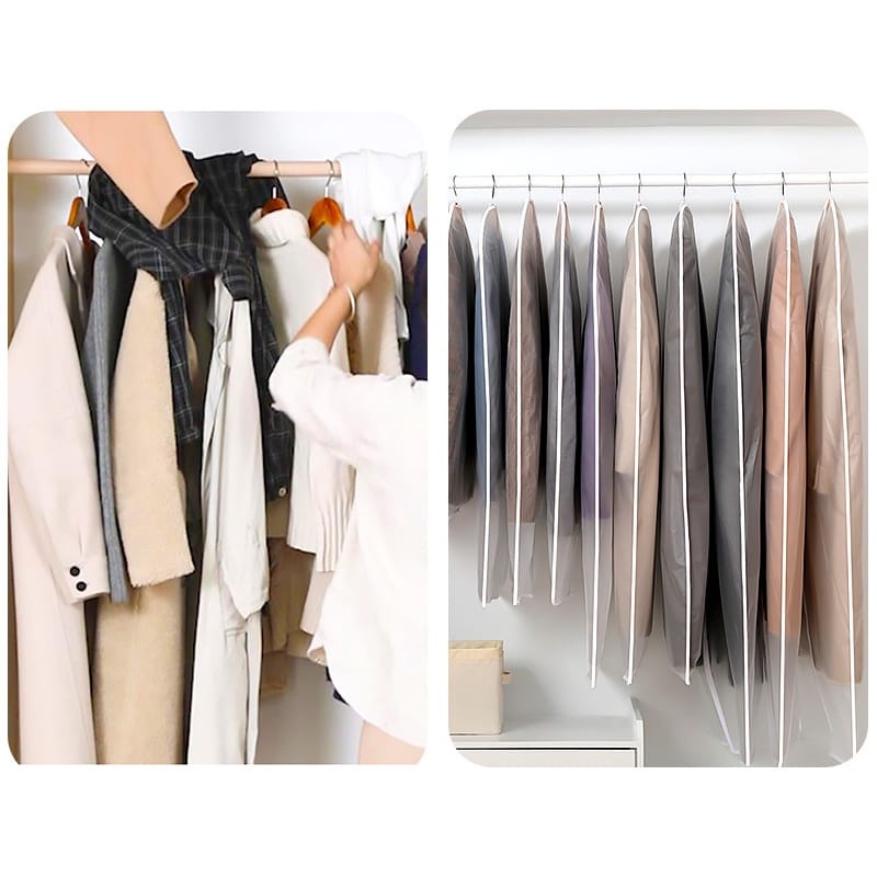 Cover Baju Transparan Gantungan Resleting Anti Debu Pelindung Pakaian Gantung Bahan PEVA Anti Air Dan Anti Jamur Sarung Gaun