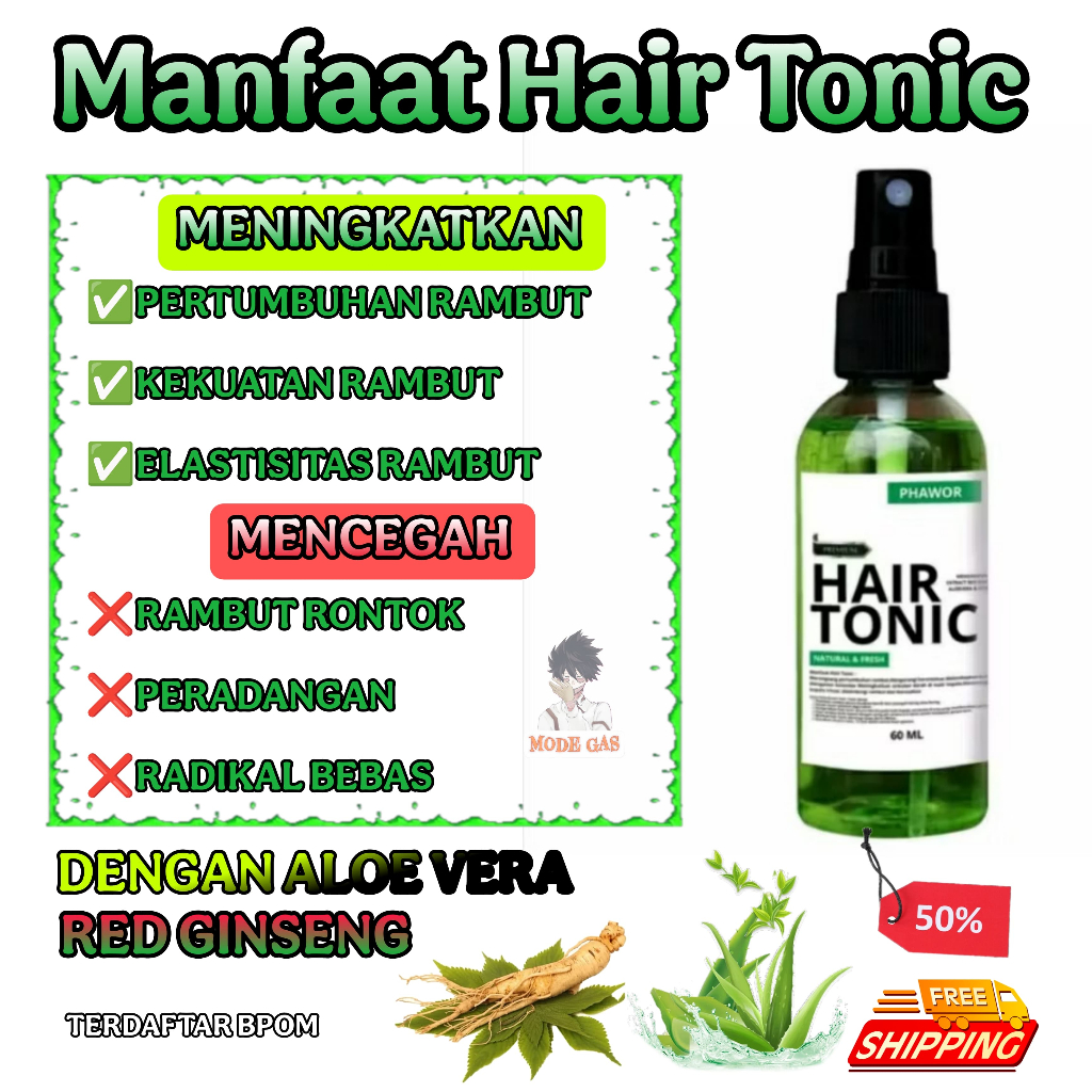 RO Hair Tonic Phawor Extract Red Ginseng Dan Aloe Vera Vitamin Rambut 60ML