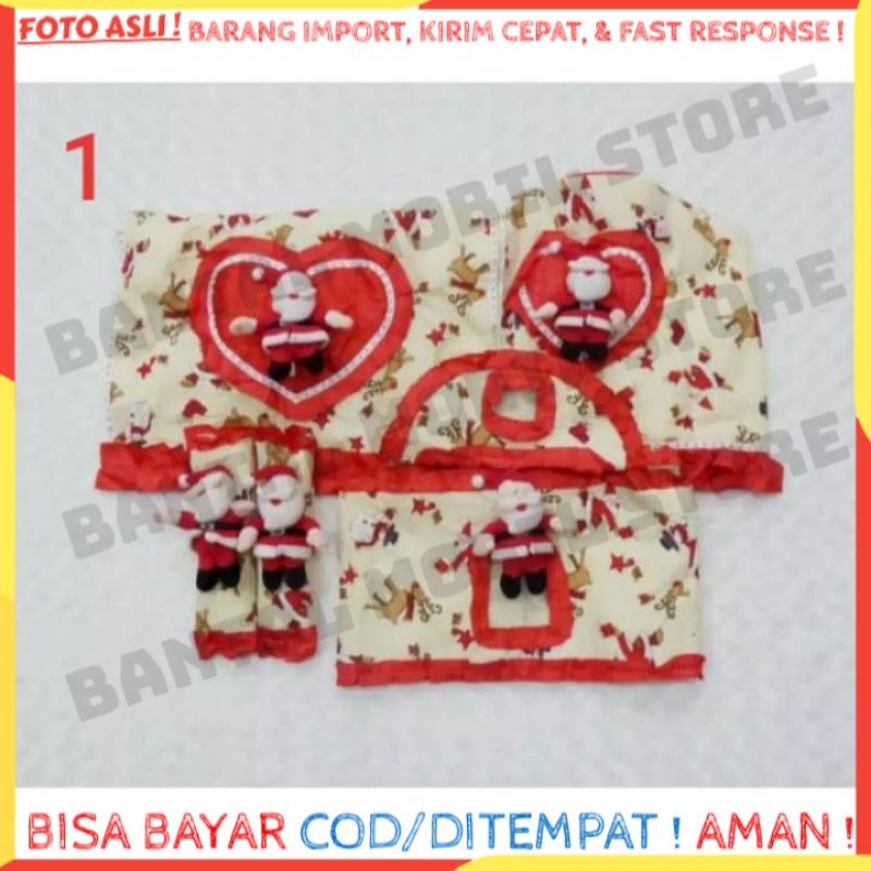 Set GKM Sarung cover tutup galon dispenser gagang penutup kulkas boneka NATAL CHRISTMAS SINTERKLAS MERAH COKLAT COKELAT CREM KREM CREAM KREAM 4