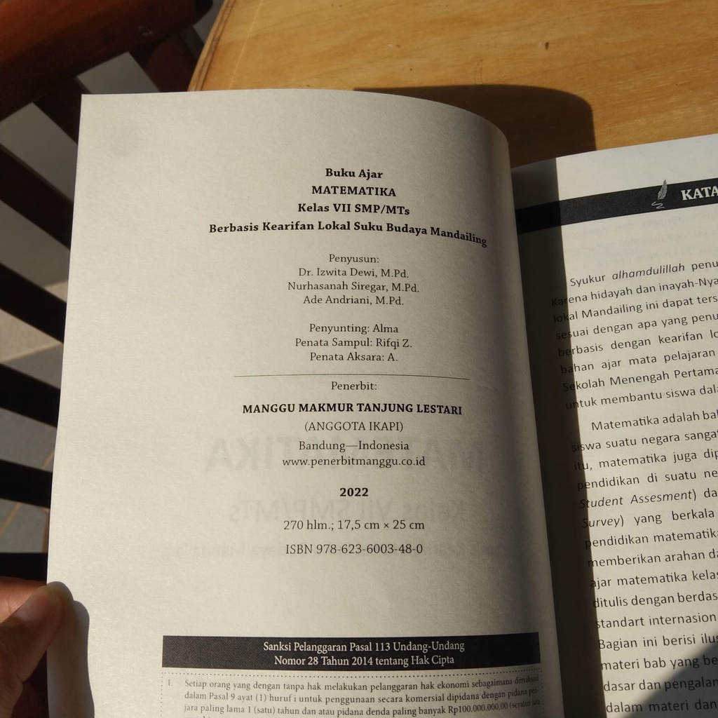 Matematika Kelas VII berbasis kearifan lokal suku budaya mandailing