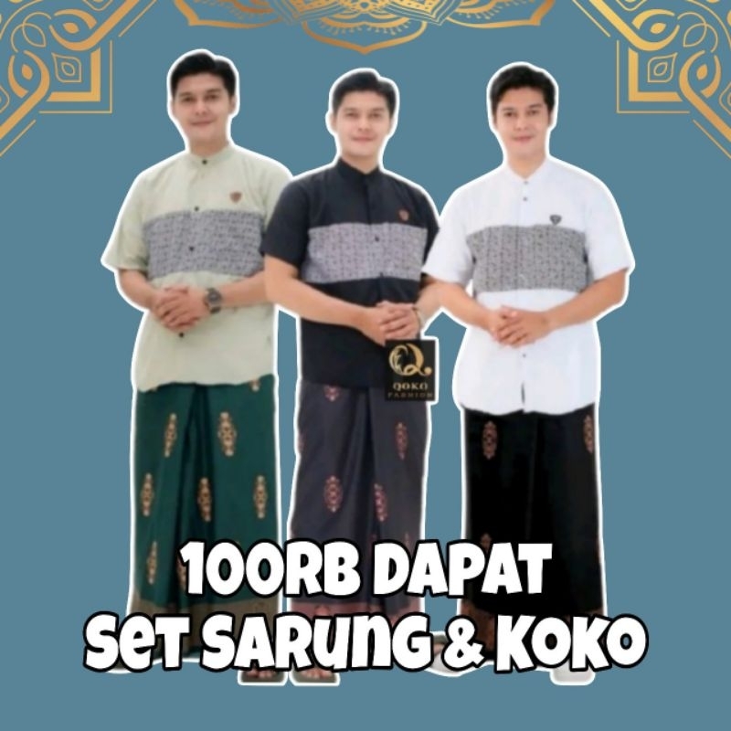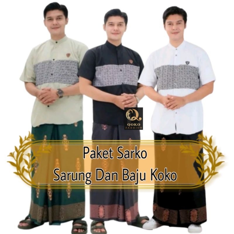 Baju Koko Set Sarung - Sarko Sarung Dan Koko Terbaru Lengan Pendek Dan Sarung Motif Sarang Tawon