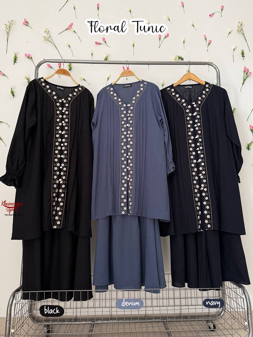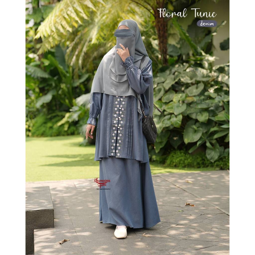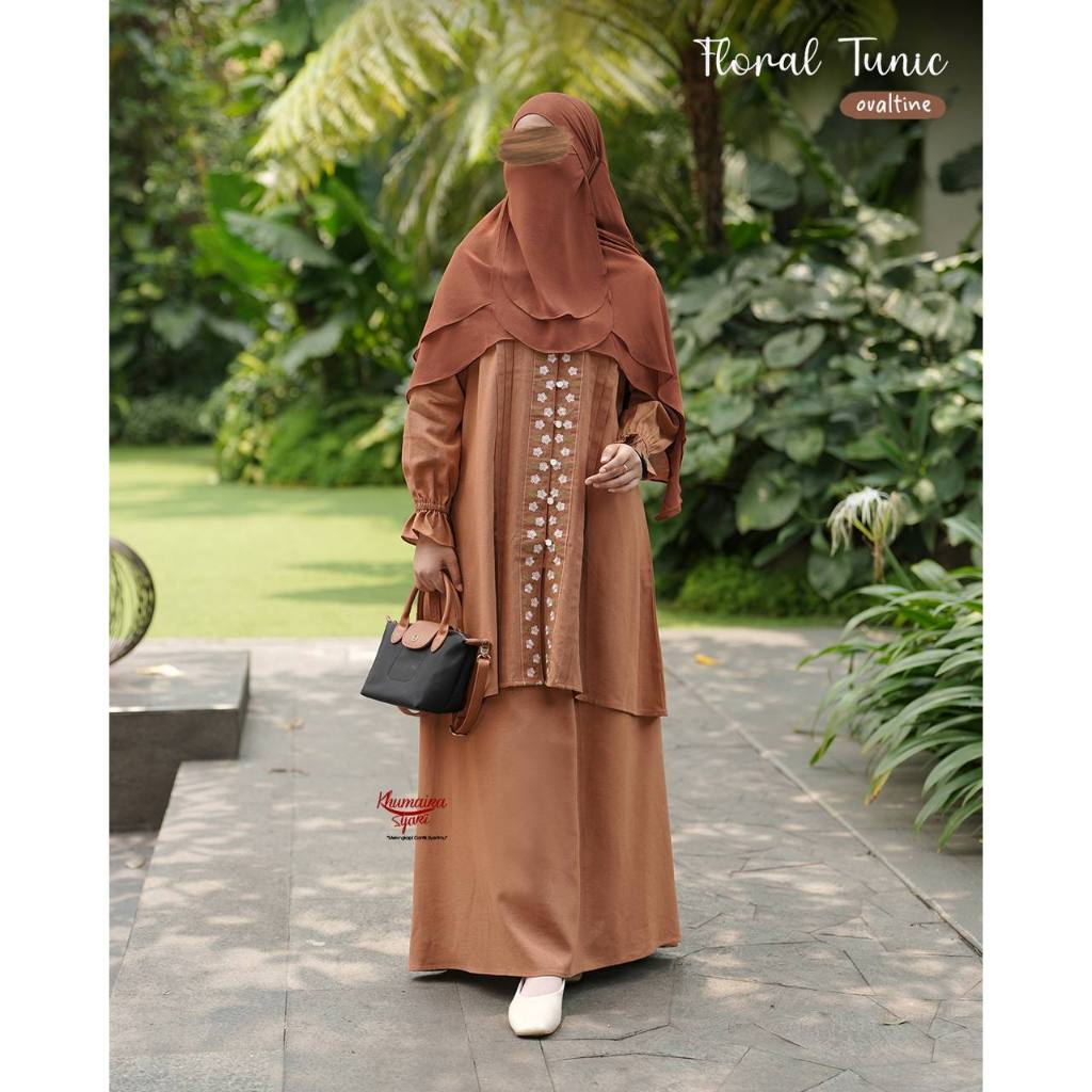 Floral Tunic by Khumaira Syari Tunik Rok Bordir Tunik Syari Melayu Kekinian