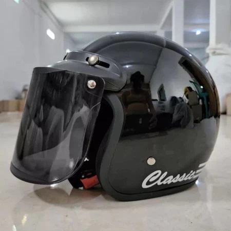 HELM BOGO GARIS CLASSIC RETRO FULL LEHER HELM COWOK CEWEK DEWASA ORIGINAL