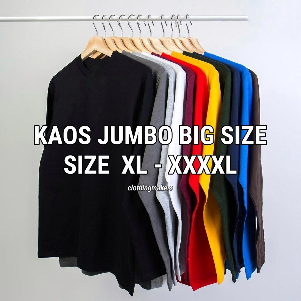 Kaos Jumbo Pria Wanita Big size Lengan Panjang Polos XL XXL XXXL XXXXL Oversize Cotton Combed 30s