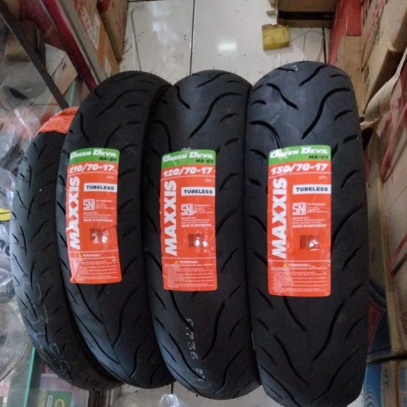 [PAKET MURAH SEPASANG] BAN MAXXIS GREEN DEVIL TUBELESS (110/70-17 & 120/70-17) MAG1 / MA-G1 / BAN LUAR MOTOR BEBEK DEPAN BELAKANG / RING 17 / R17 / VERZA / VIXION / CB 150R / BYSON / JUPITER / FIZR / MX KING / SATRIA / SONIC / BAN CACING / BABY LOOK