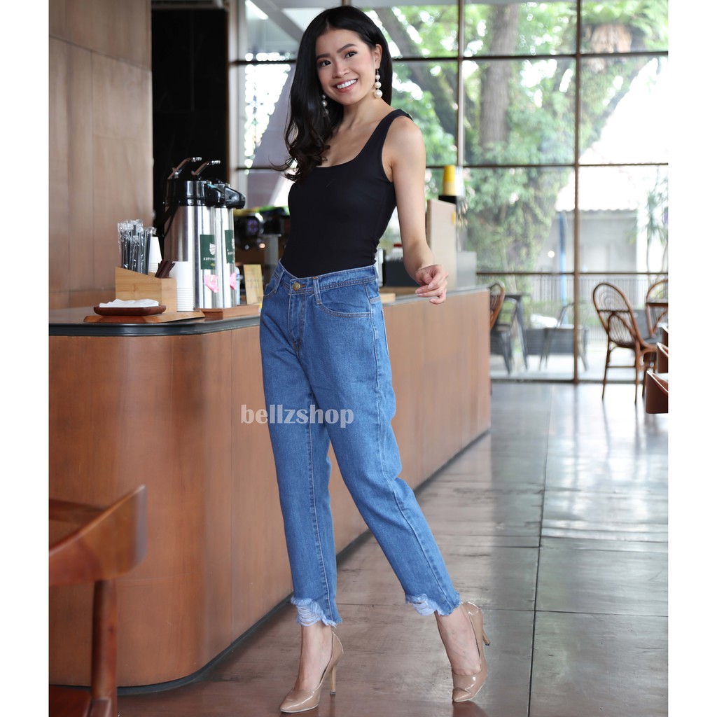 703 BOYFRIEND JEANS Wanita Non Stretch BF Jeans Bukan Ripped Sobek Cewek Kekinian Murah