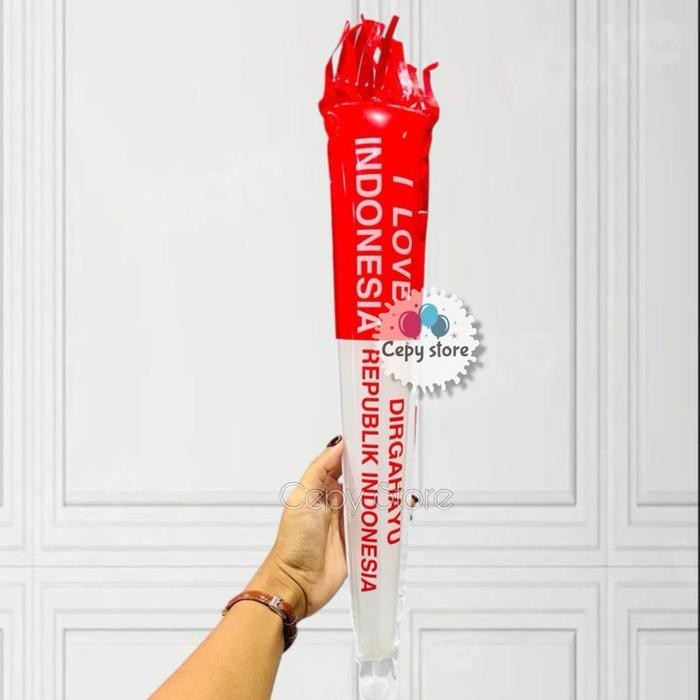 IDN4 - 1PAK ISI 50 Balon Foil Tepuk Dirgahayu RI / Balon Obor PL Merah Putih 17 Agustus