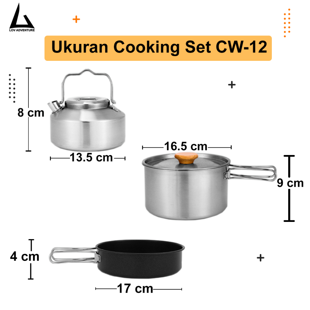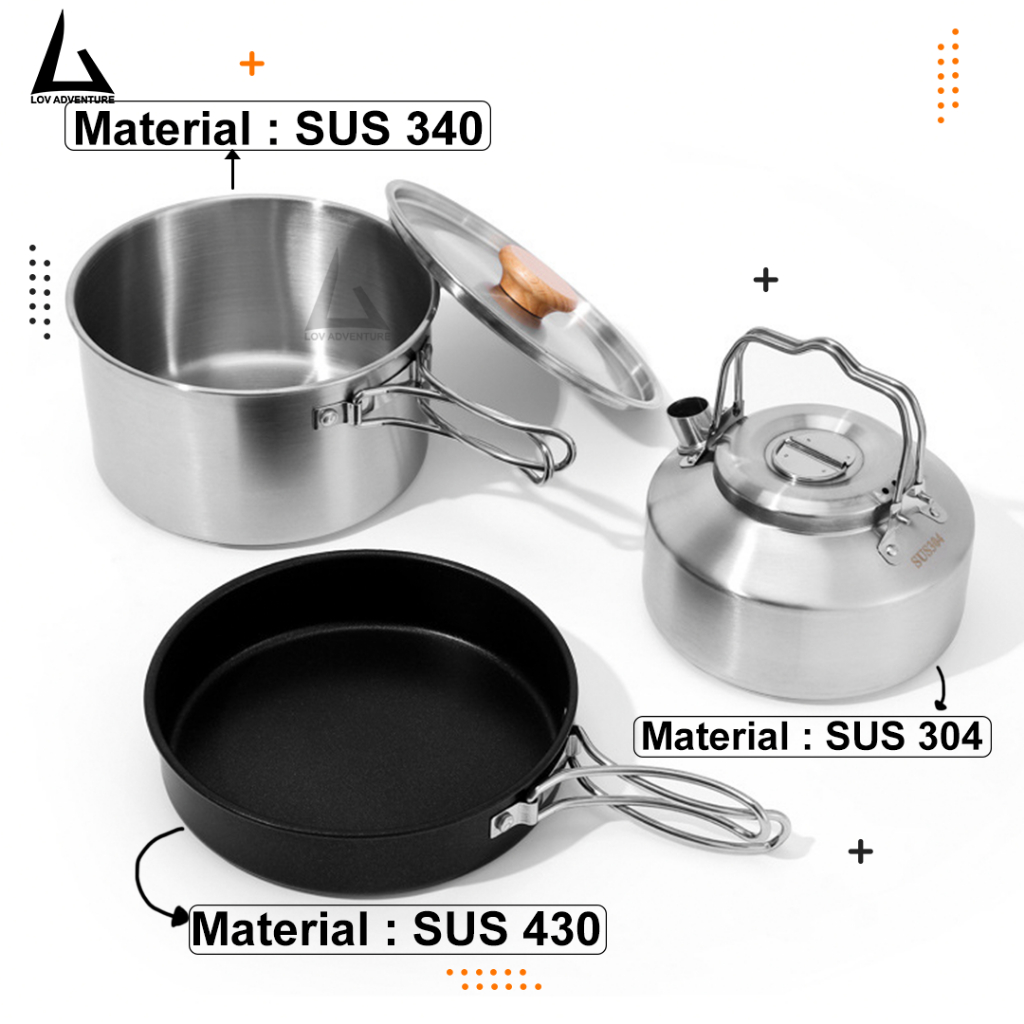 Cooking Set Camping Stainless Steel 304 – Nesting Outdoor CW12 Anti Karat