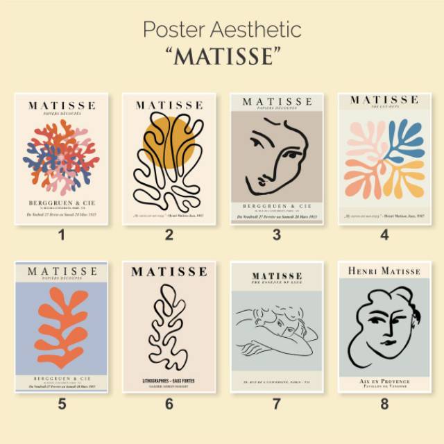 A4 poster lukisan gambar aesthetic dekor kamar Matisse series