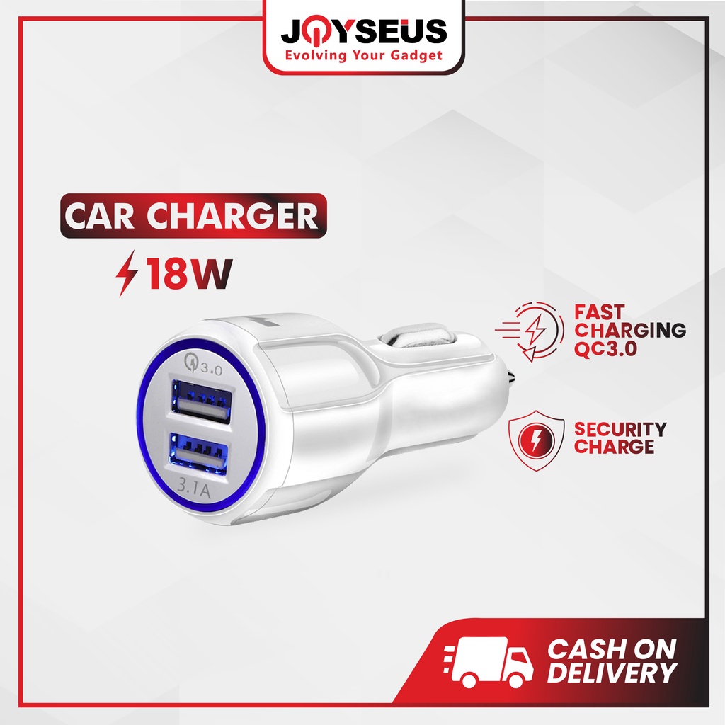 Car Charger Adaptor Mobil 2 Ports QC3.0 3.1A JOYSEUS Qualcomm Black White - JM0002 JM0001