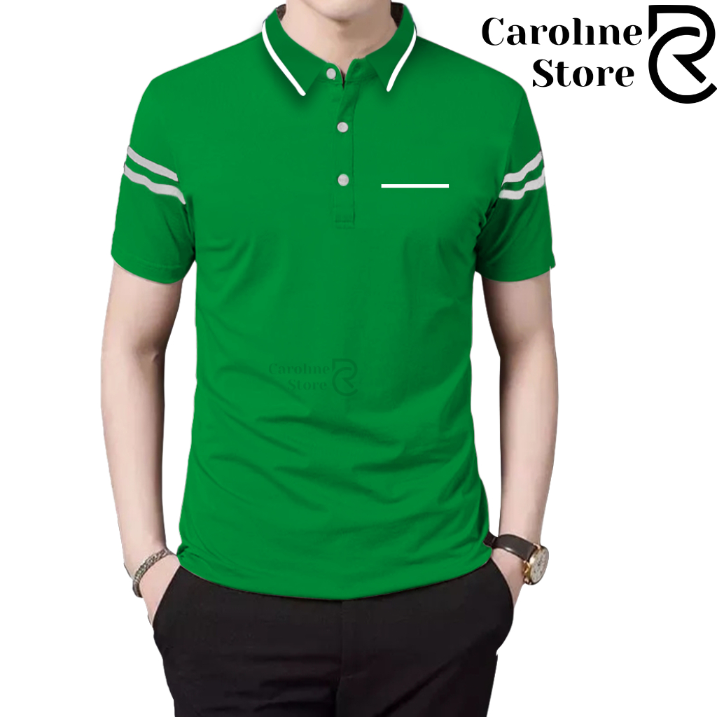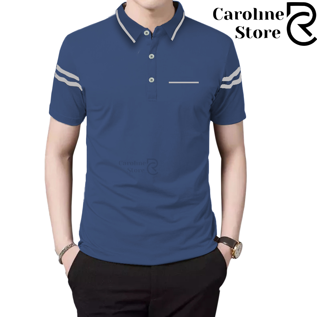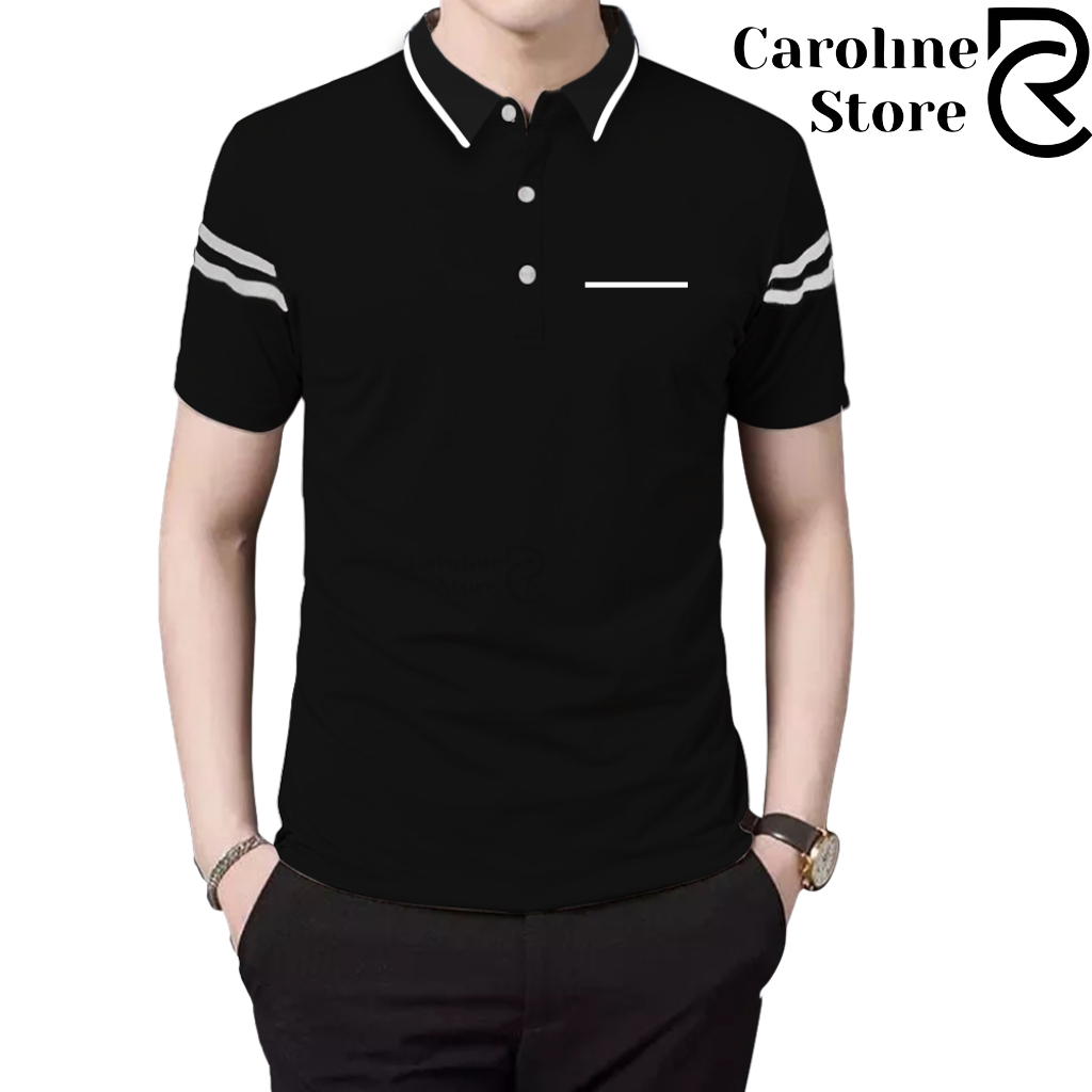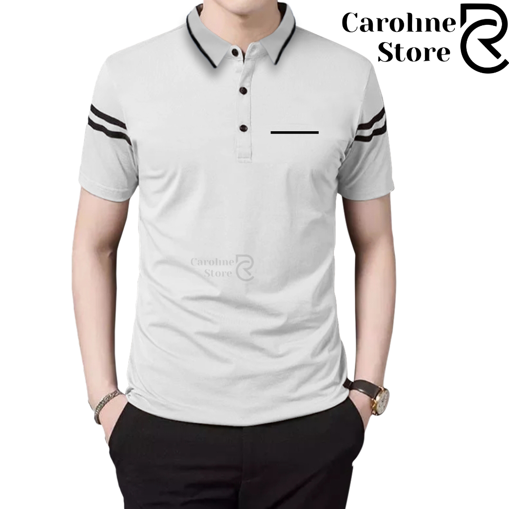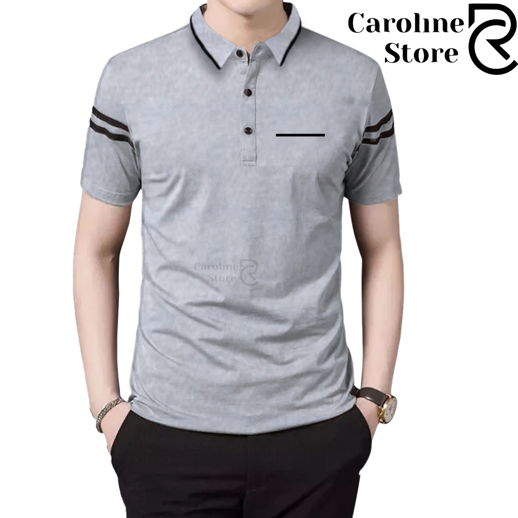 Polo Shirt Zipper Pria Cotton Combed Premium Kerah Daun Saku Garis - Kaos Kerah Lengan Pendek Adem & Lembut
