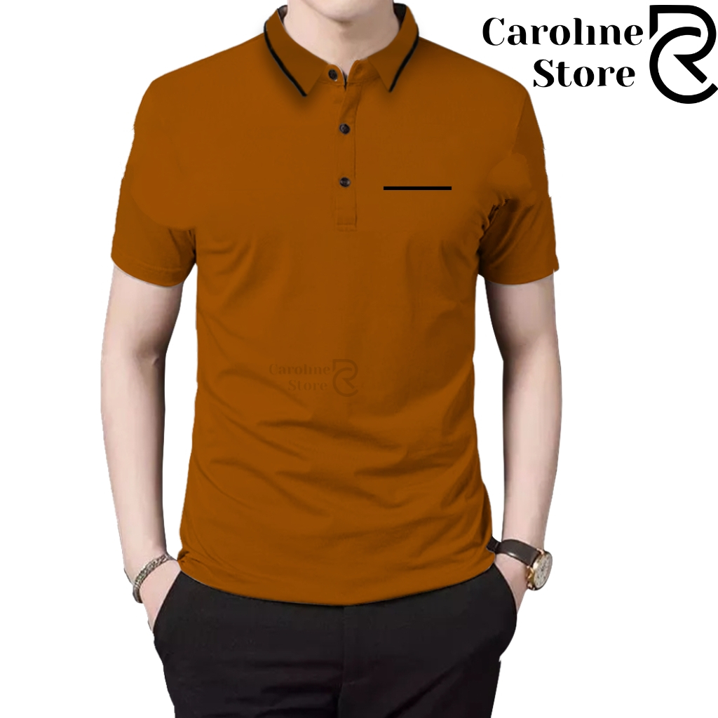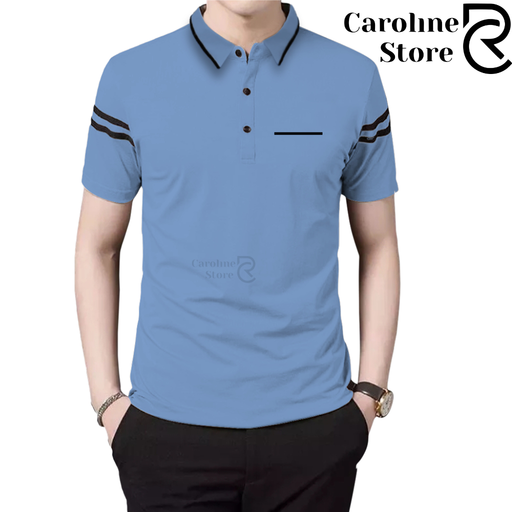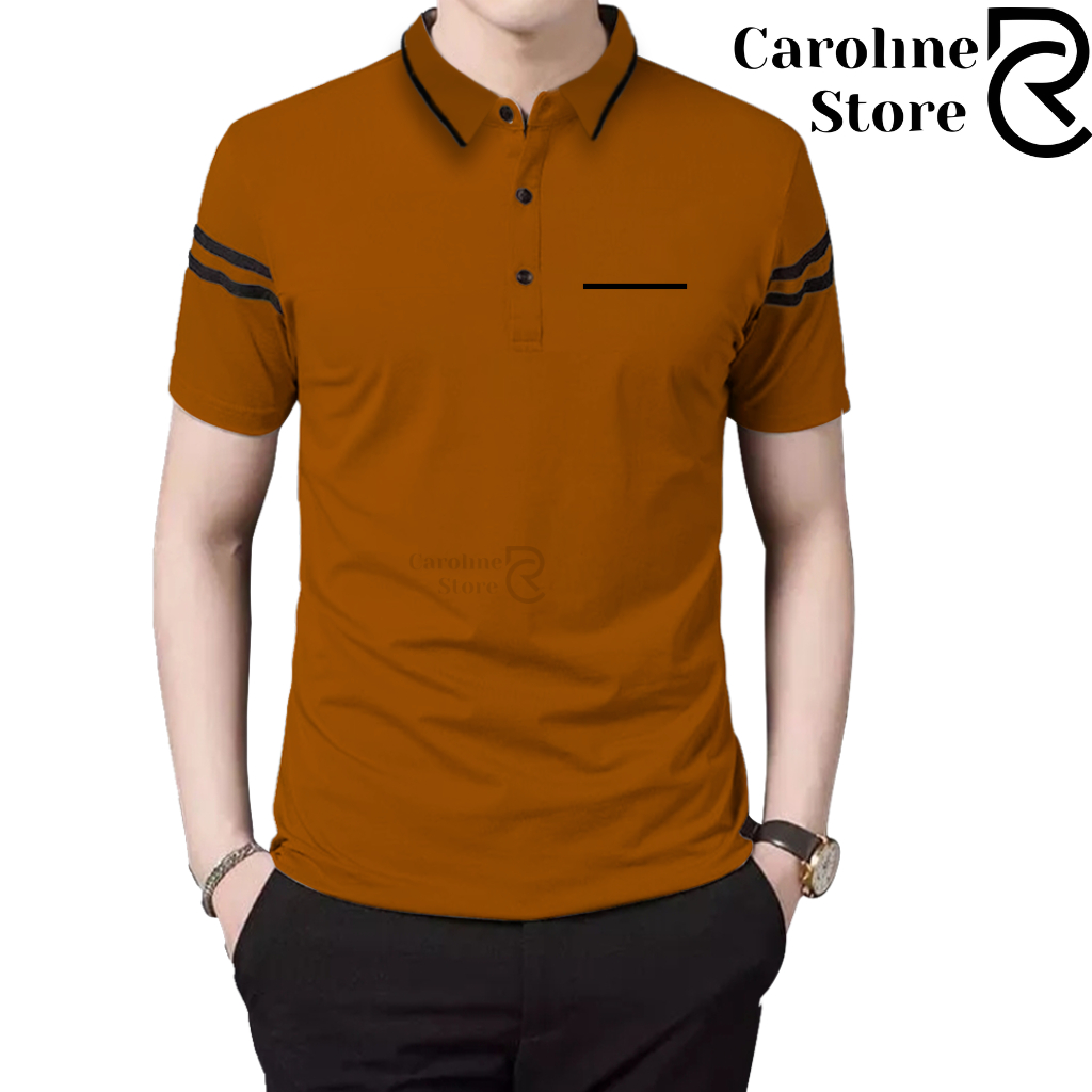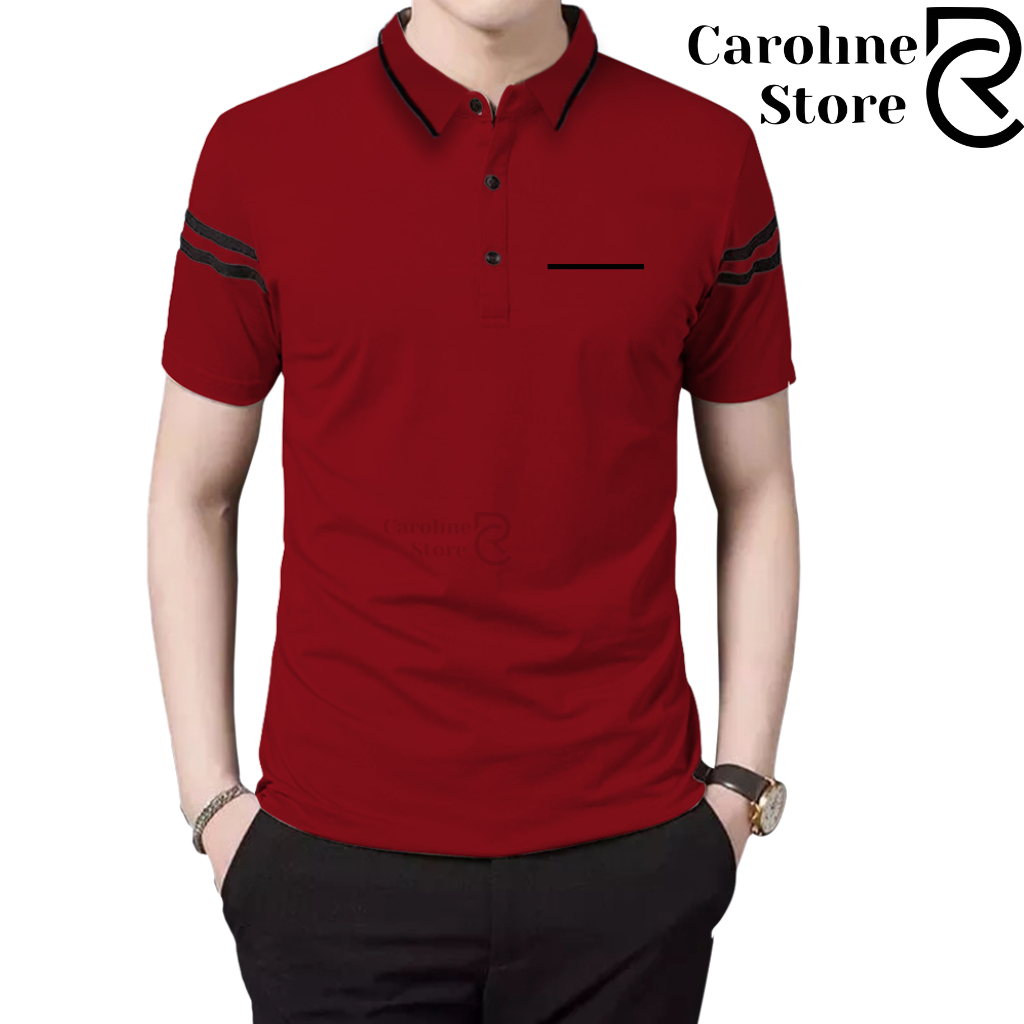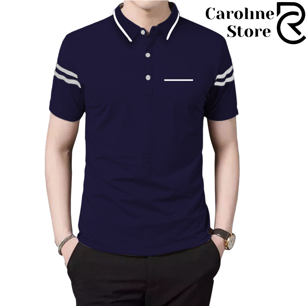Polo Shirt Zipper Pria Cotton Combed Premium Kerah Daun Saku Garis - Kaos Kerah Lengan Pendek Adem & Lembut